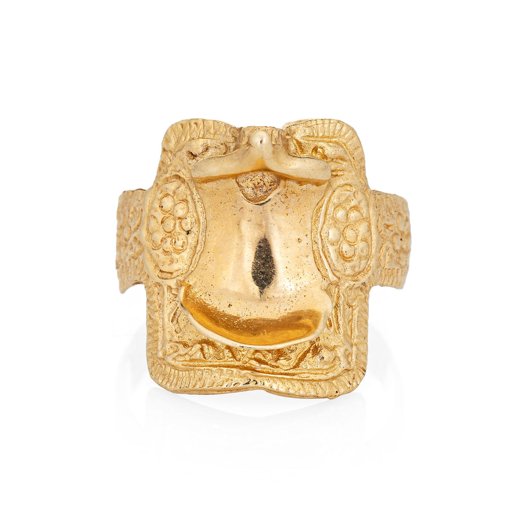 Stylish riding saddle ring crafted in 14 karat yellow gold.
