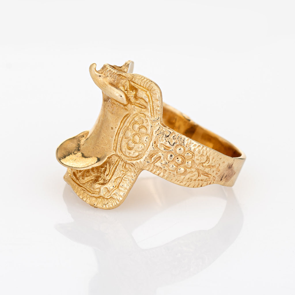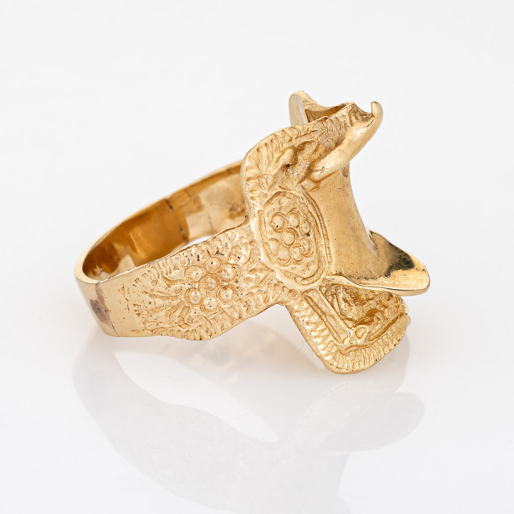 Riding Saddle Ring 14k Yellow Gold Sz 6.75 Equestrian Animal Estate Jewelry