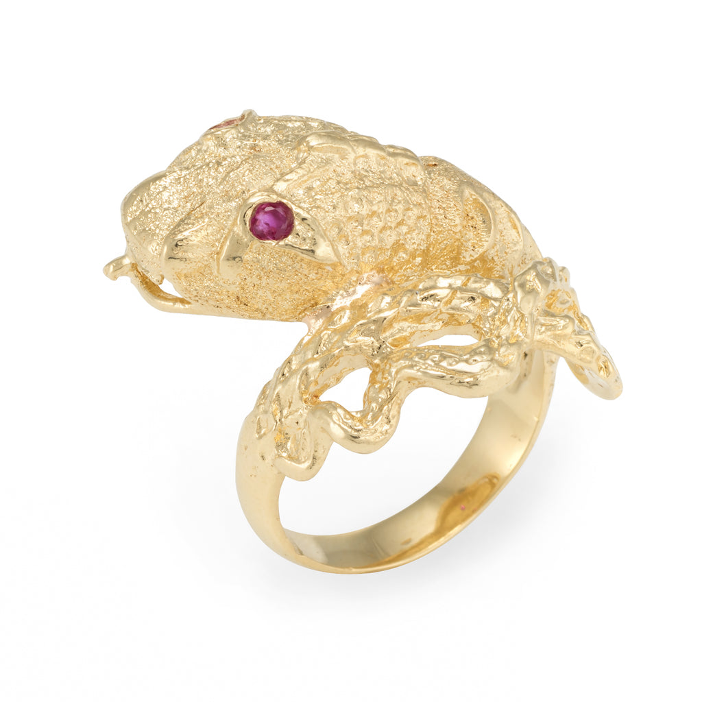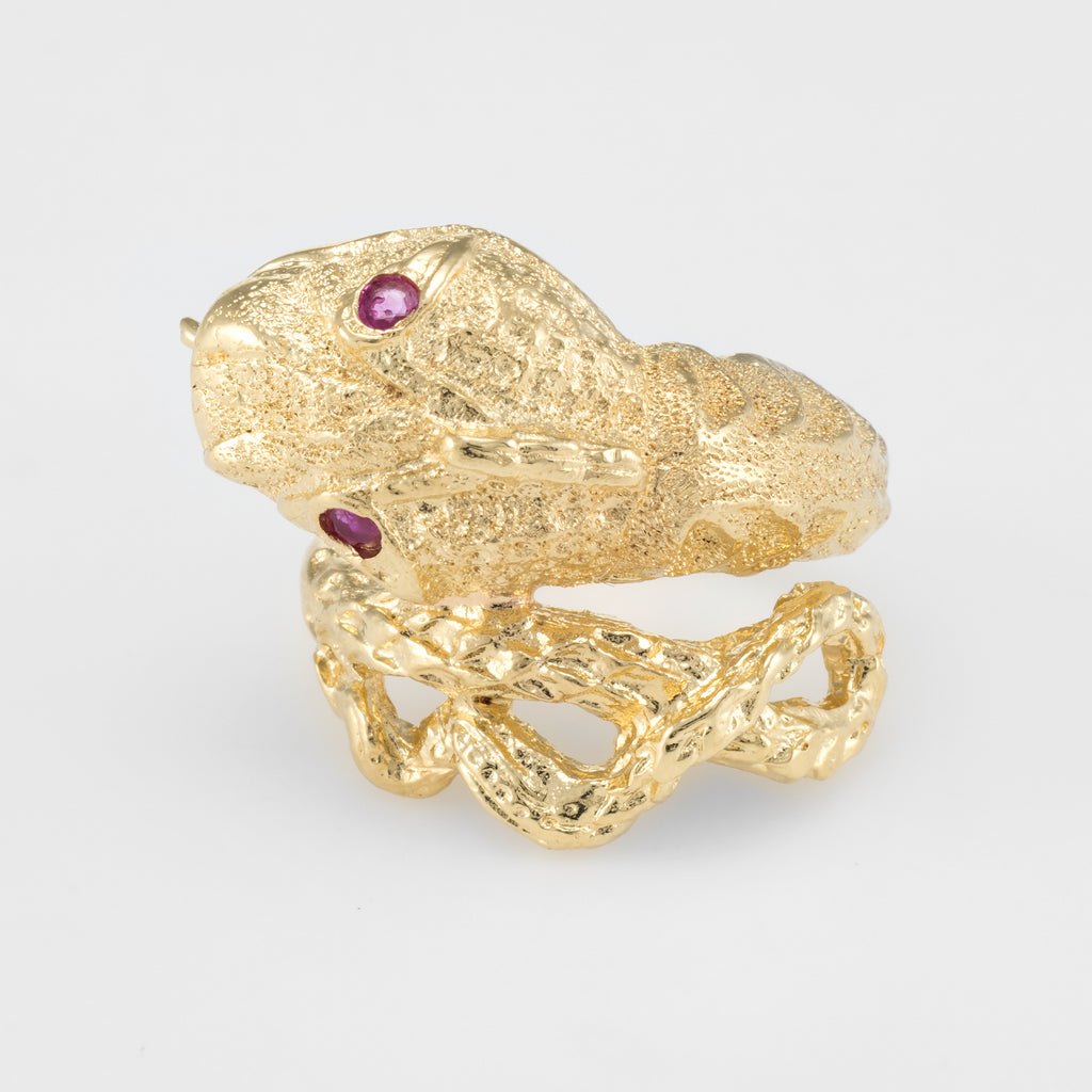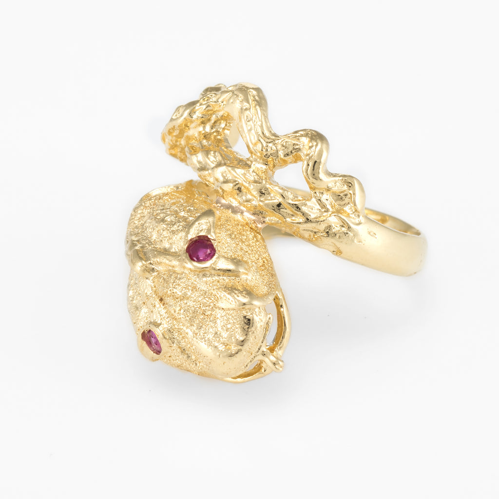 Snake Serpent Ring Vintage 18k Yellow Gold Ruby Eyes Fine Estate Jewelry