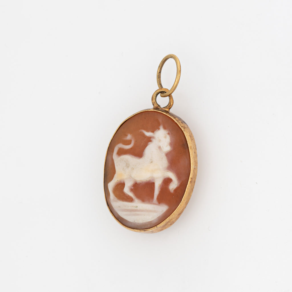 Vintage Cameo Pendant Double Sided 14k Yellow Gold The Three Graces Animal
