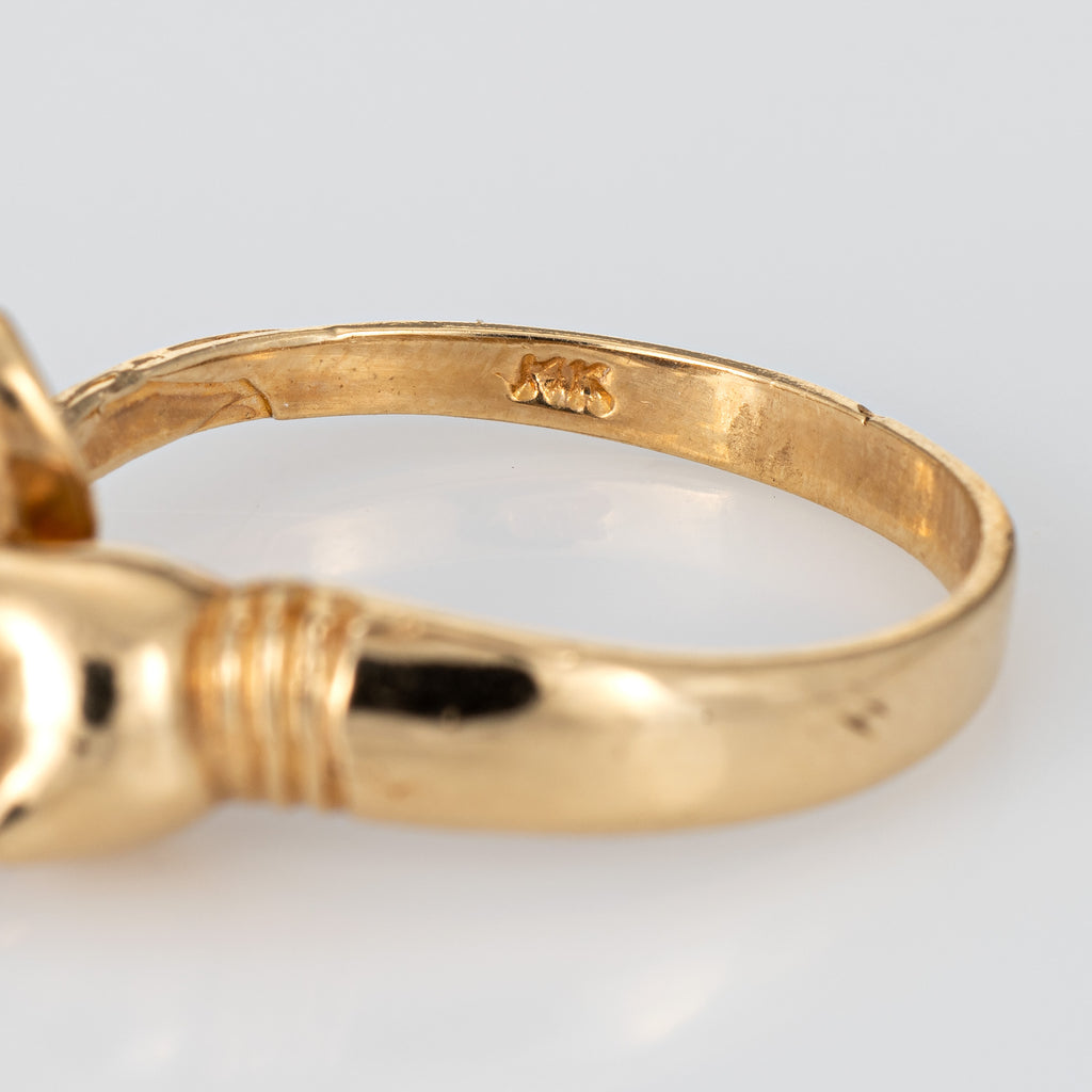 Metal & Hallmark: 14 karat yellow gold. The ring is hallmarked "14k"