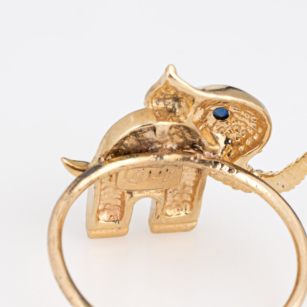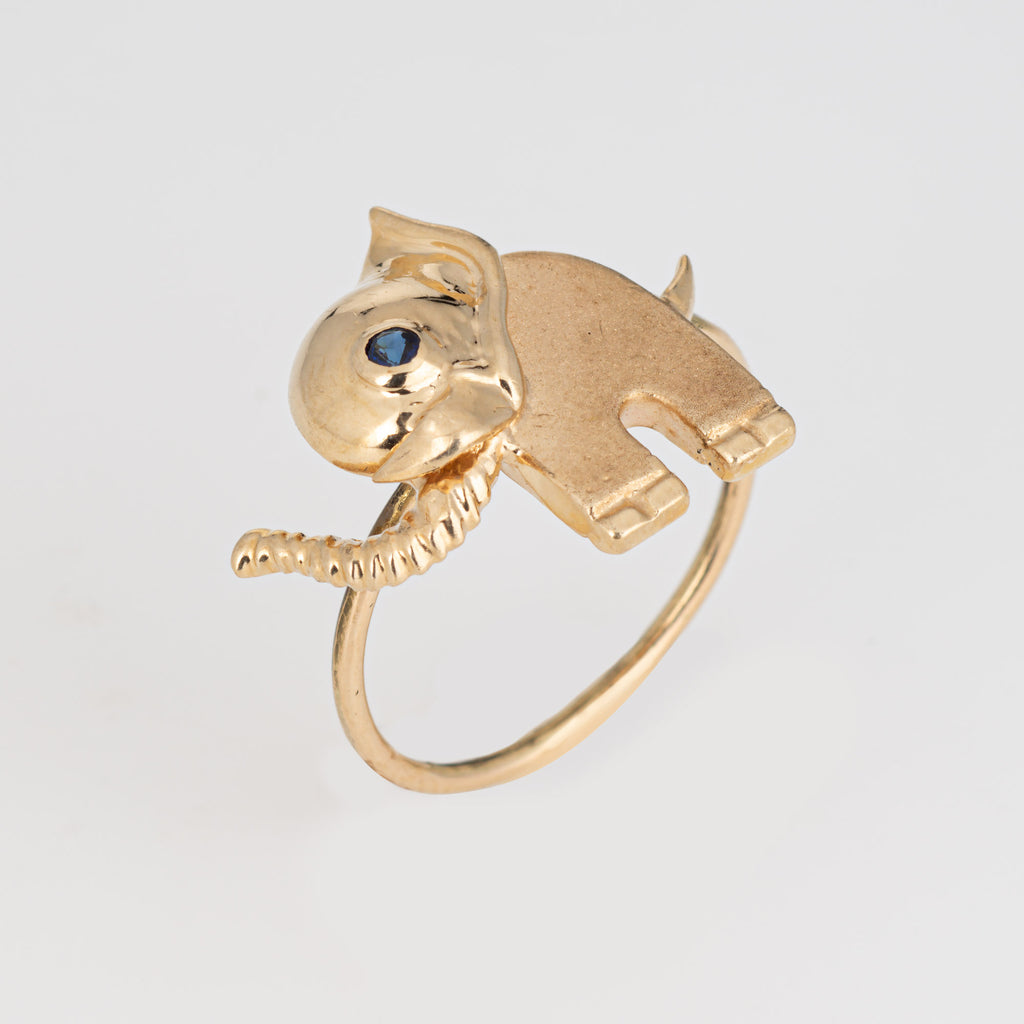 Vintage Elephant Conversion Ring 14k Yellow Gold Sz 5.75 Fine Animal Jewelry