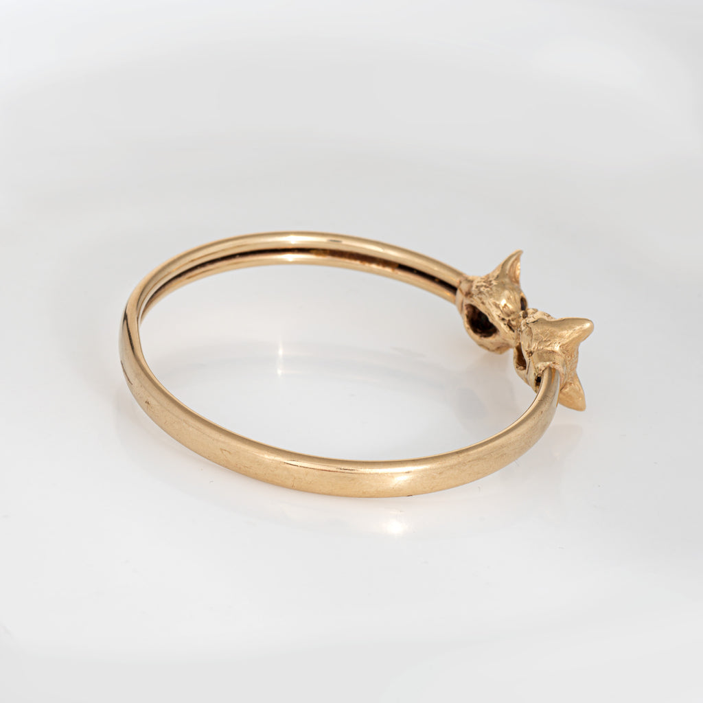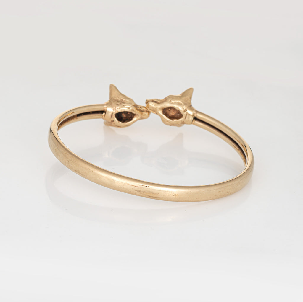 Vintage Double Fox Head Bangle Bracelet 14k Yellow Gold Bypass Estate Jewelry