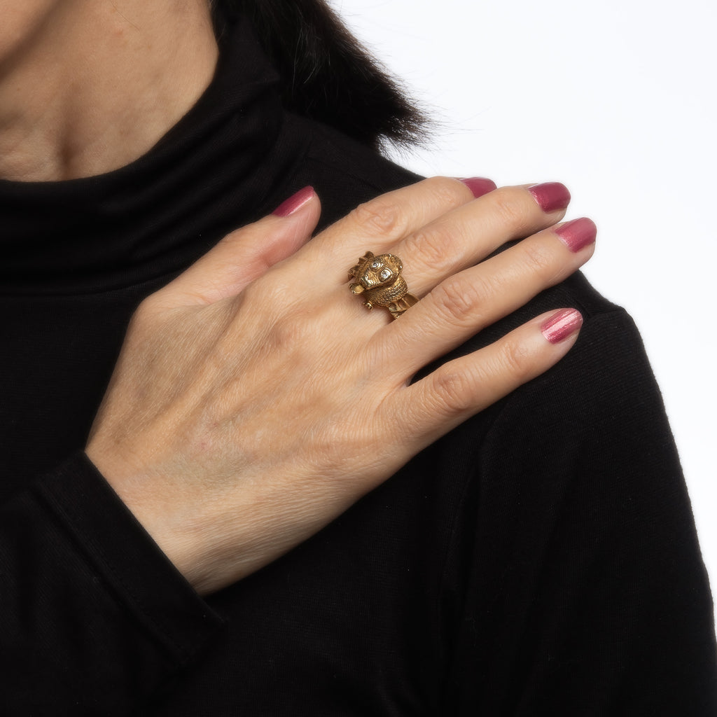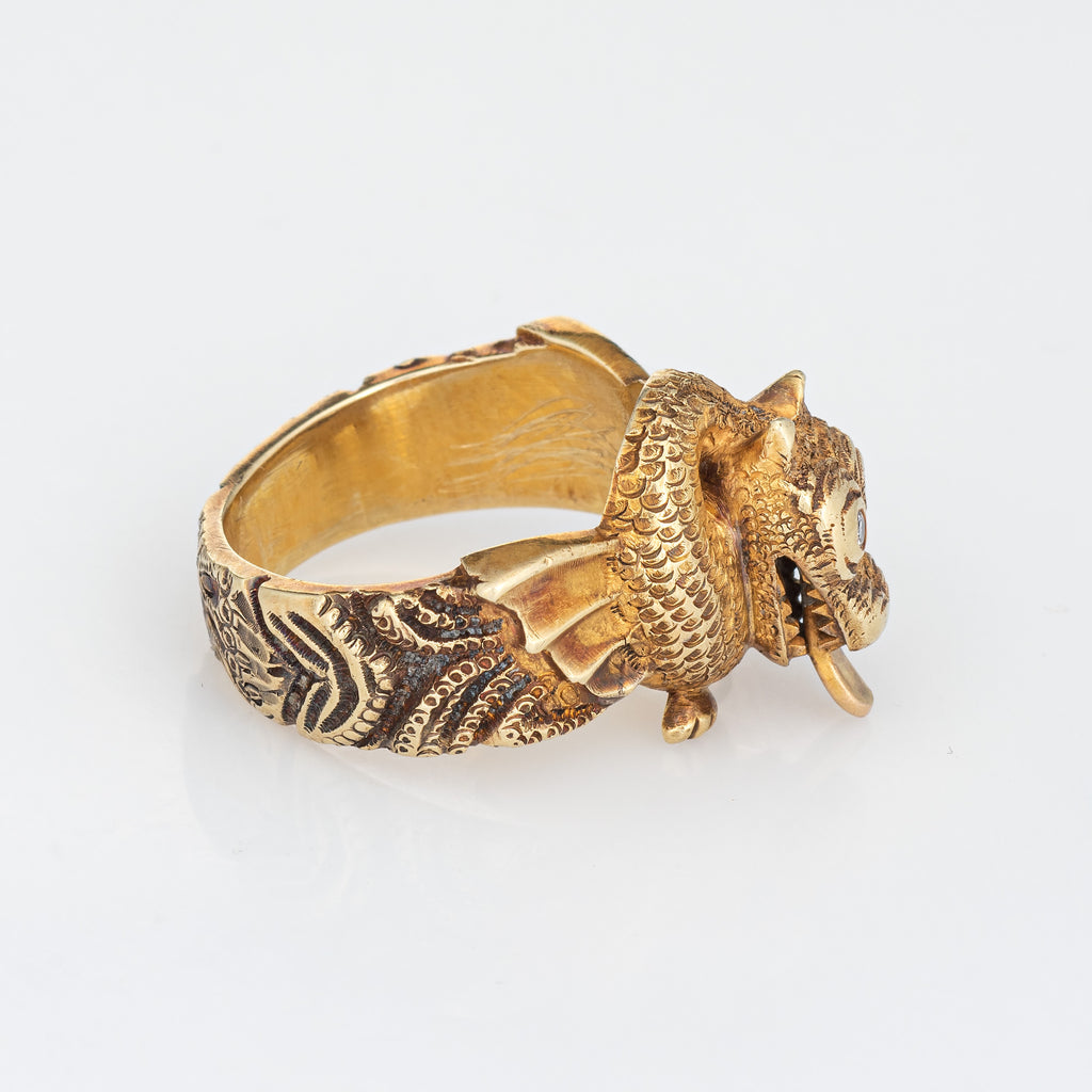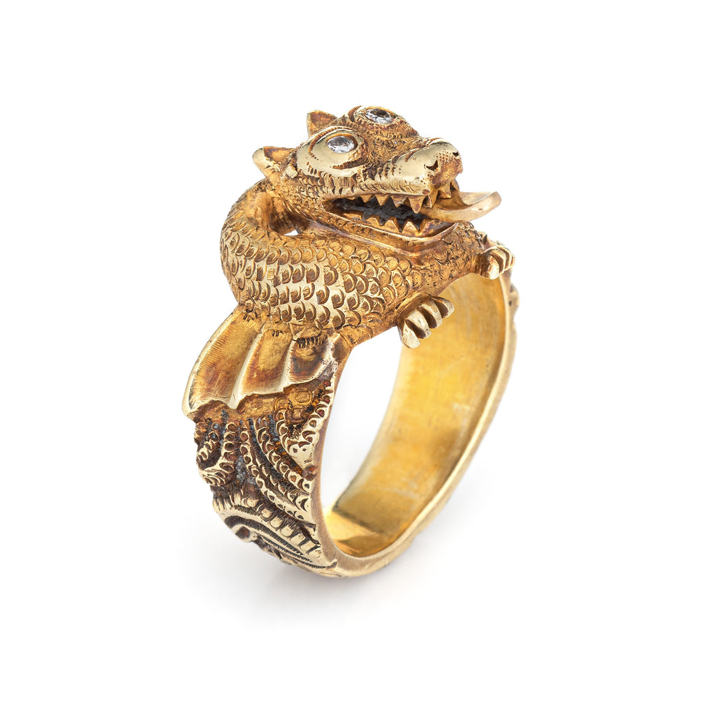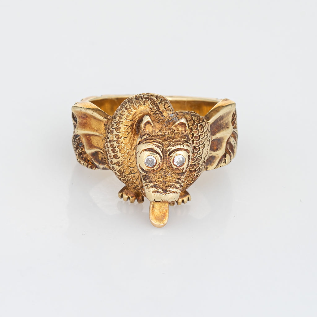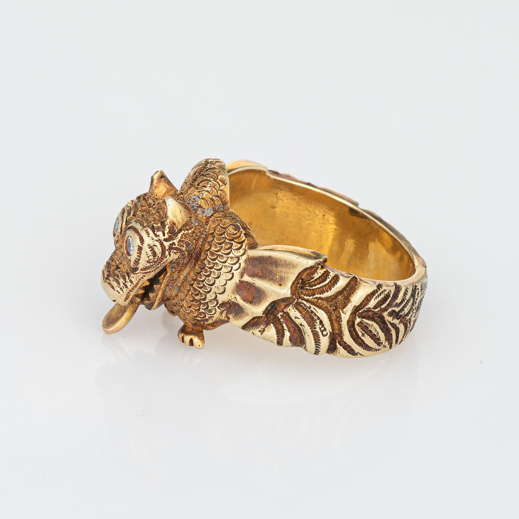 Unique & stylish vintage winged dragon ring (circa 1960s to 1970s) crafted in 18 karat yellow gold.