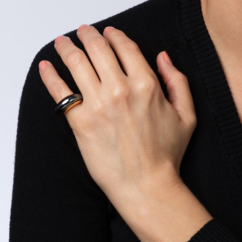 Vintage Van Cleef & Arpels hematite & 18k yellow gold dome ring (circa 1970s to 1980s).
