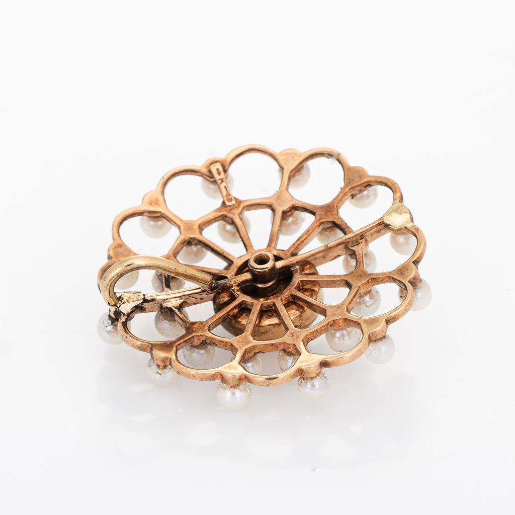Antique Victorian Pendant Opal Seed Pearl 14k Rose Gold Circle Fine Jewelry