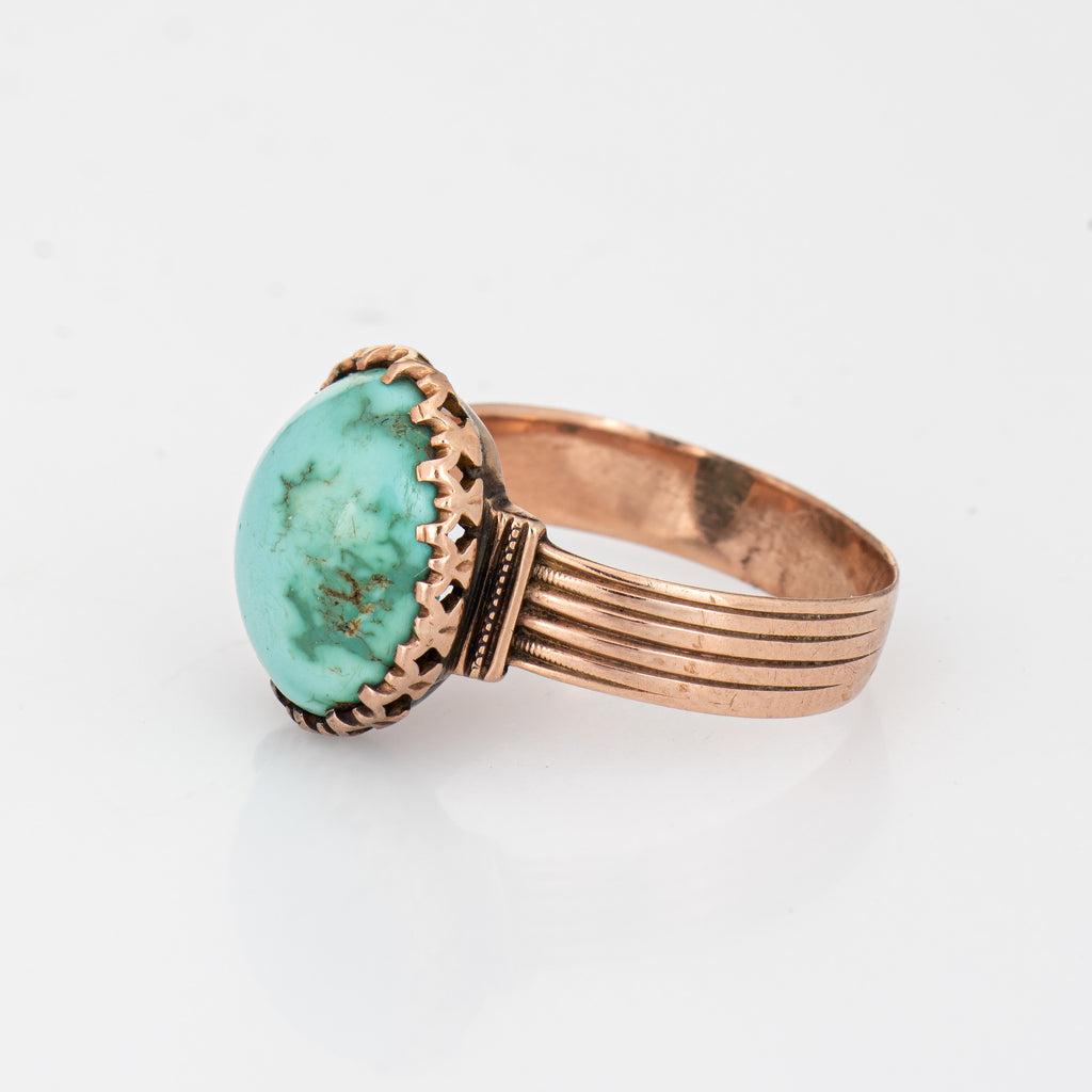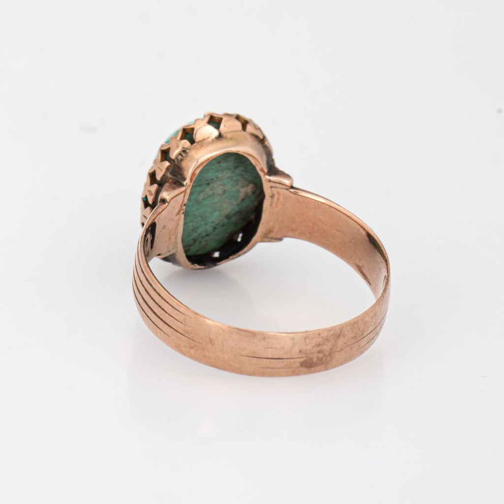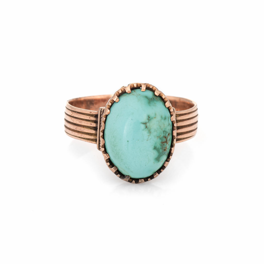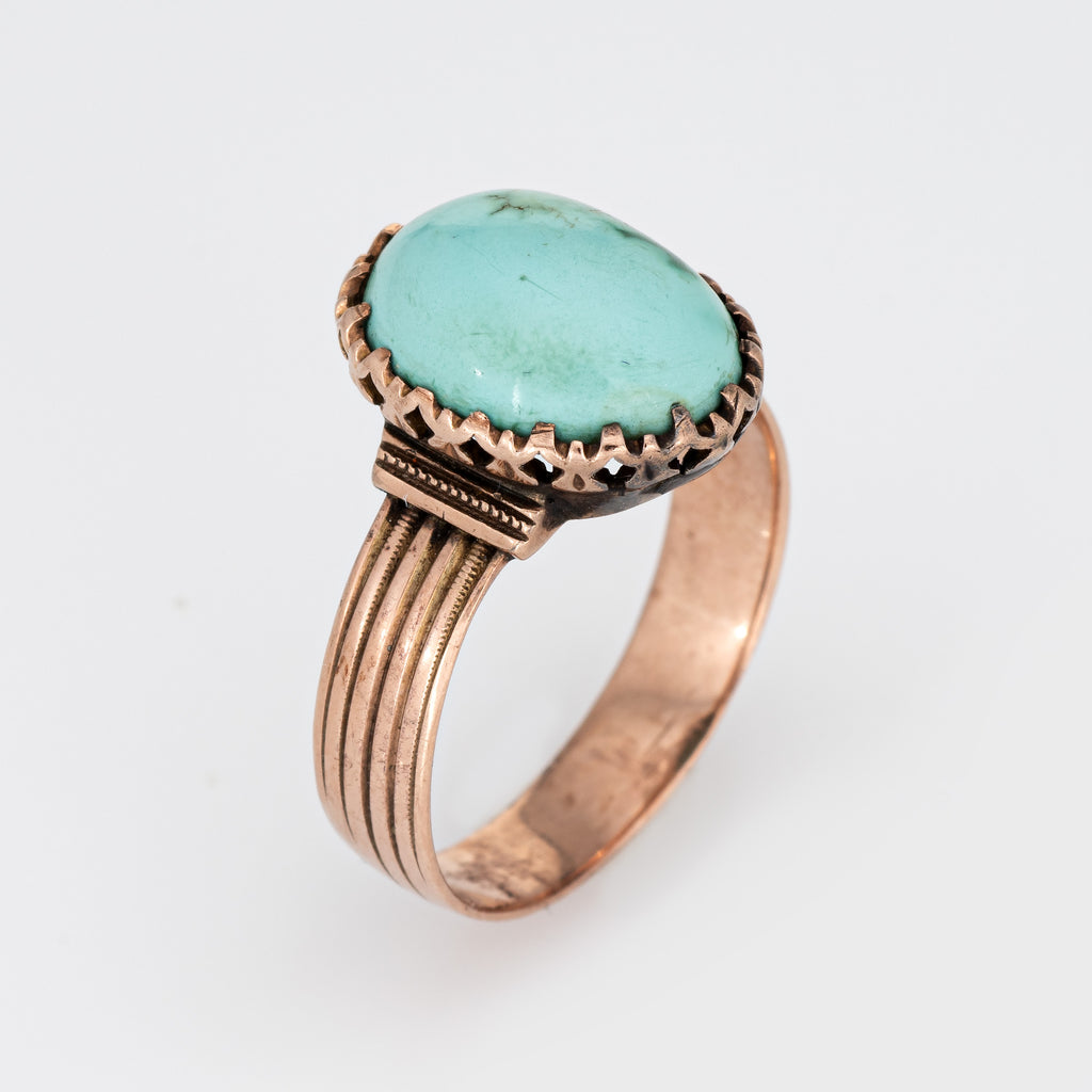 Elegant antique Victorian era turquoise ring (circa 1880s to 1900s), crafted in 10 karat rose gold.