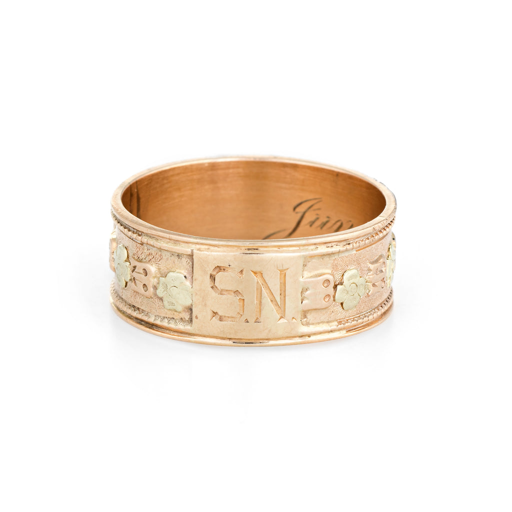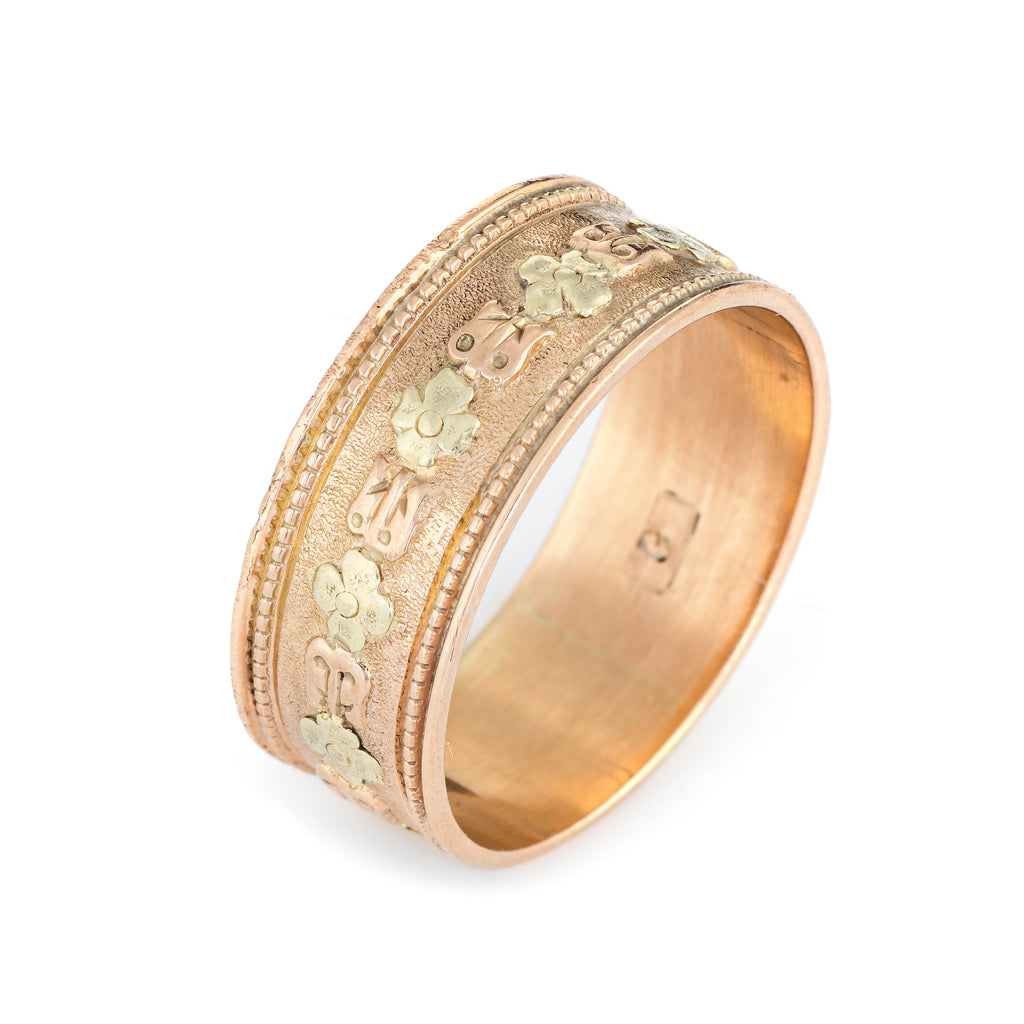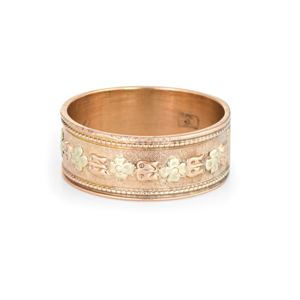 Antique Victorian Wedding Band c1899 Sz 7.5 10k Rose Gold Flowers Ring Jewelry