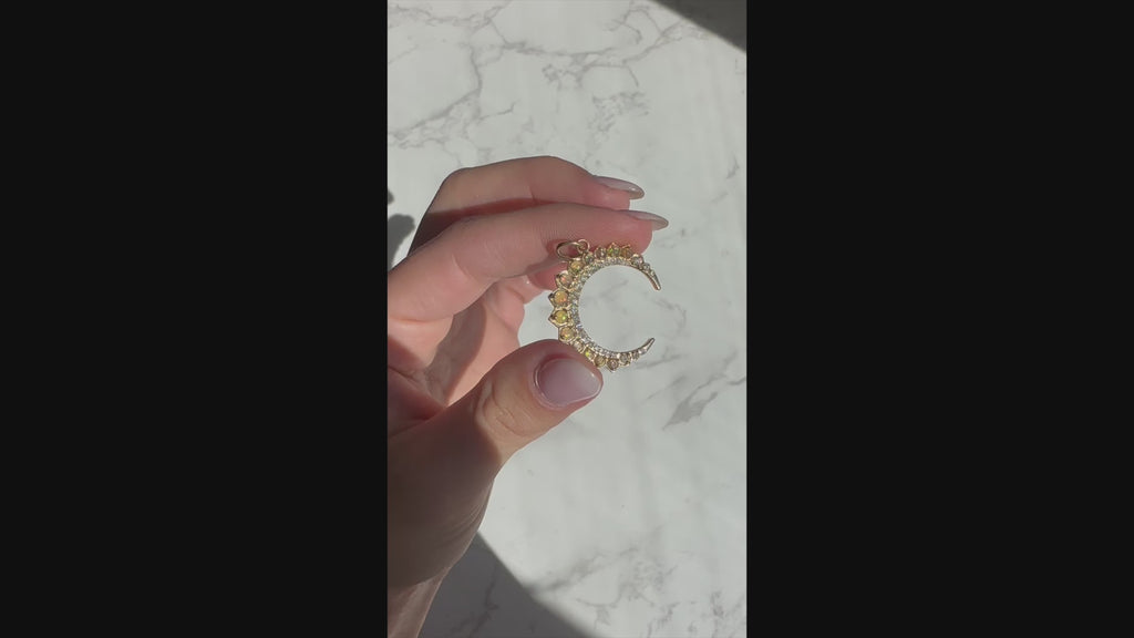 Opal Diamond Crescent Moon Pendant 14k Gold Celestial Jewelry Estate Fine