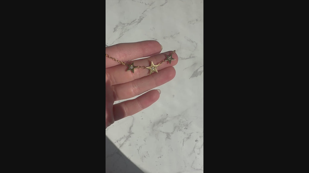 Size & Measurements: The necklace measures 16 inches in length. The stars measure from 11mm (outer) to 13.5mm (center).
