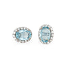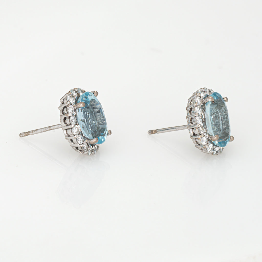 Stylish aquamarine & diamond oval stud earrings crafted in 14k white gold.