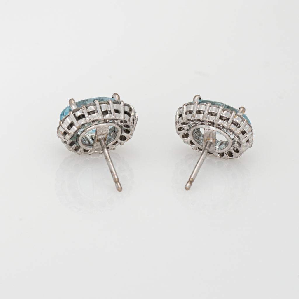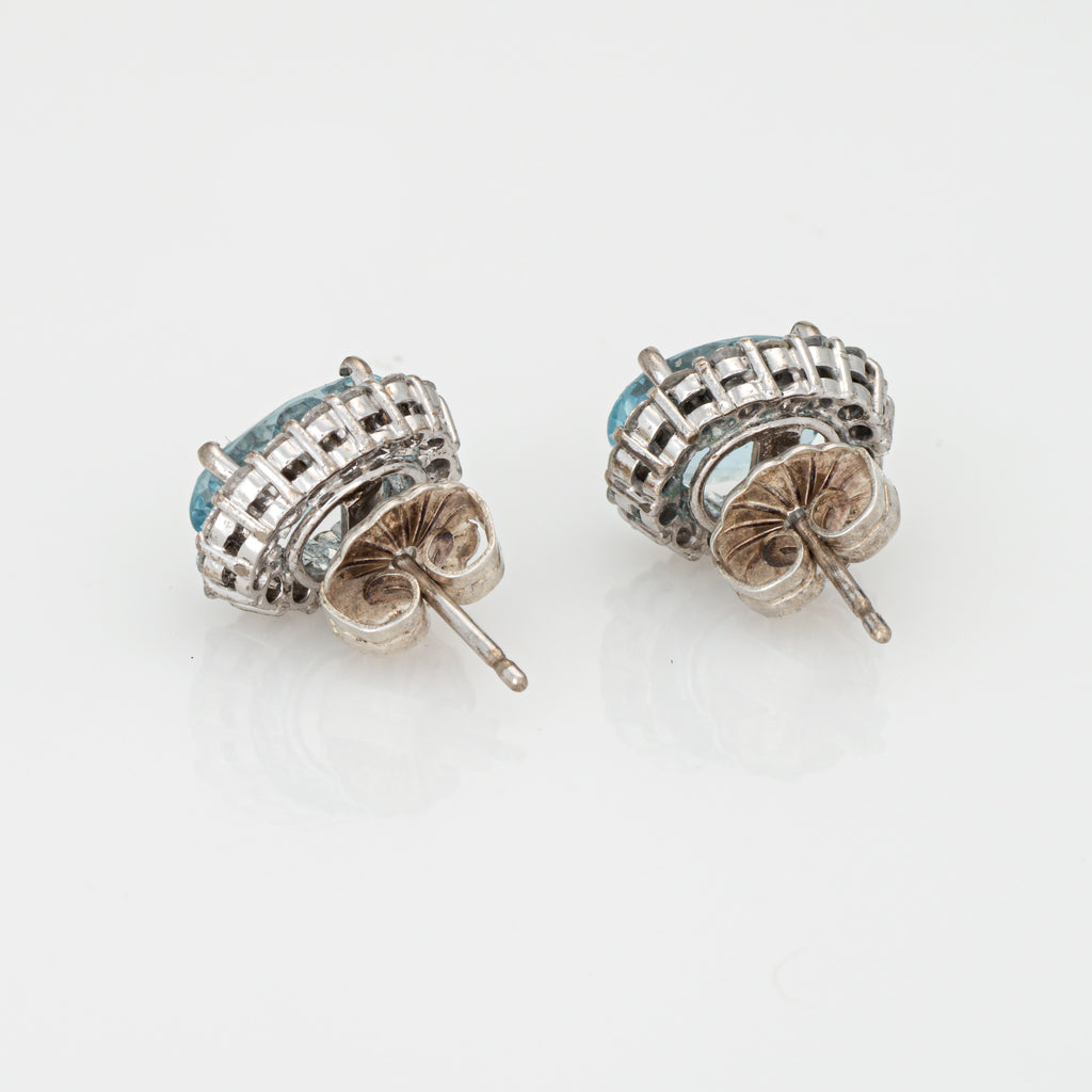 The clear as sky blue aquamarines are set into elegant oval mounts, accented with shimmering diamonds. The earrings are great worn during the day and can easily transition to a glam evening look. The earrings are fitted with post and butterfly backings for pierced ears.