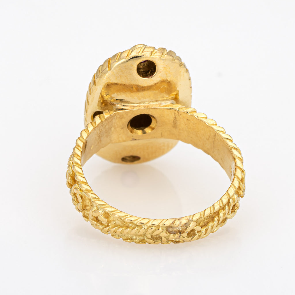 Stylish vintage Etruscan style gemstone cocktail ring crafted in 18 karat yellow gold.
