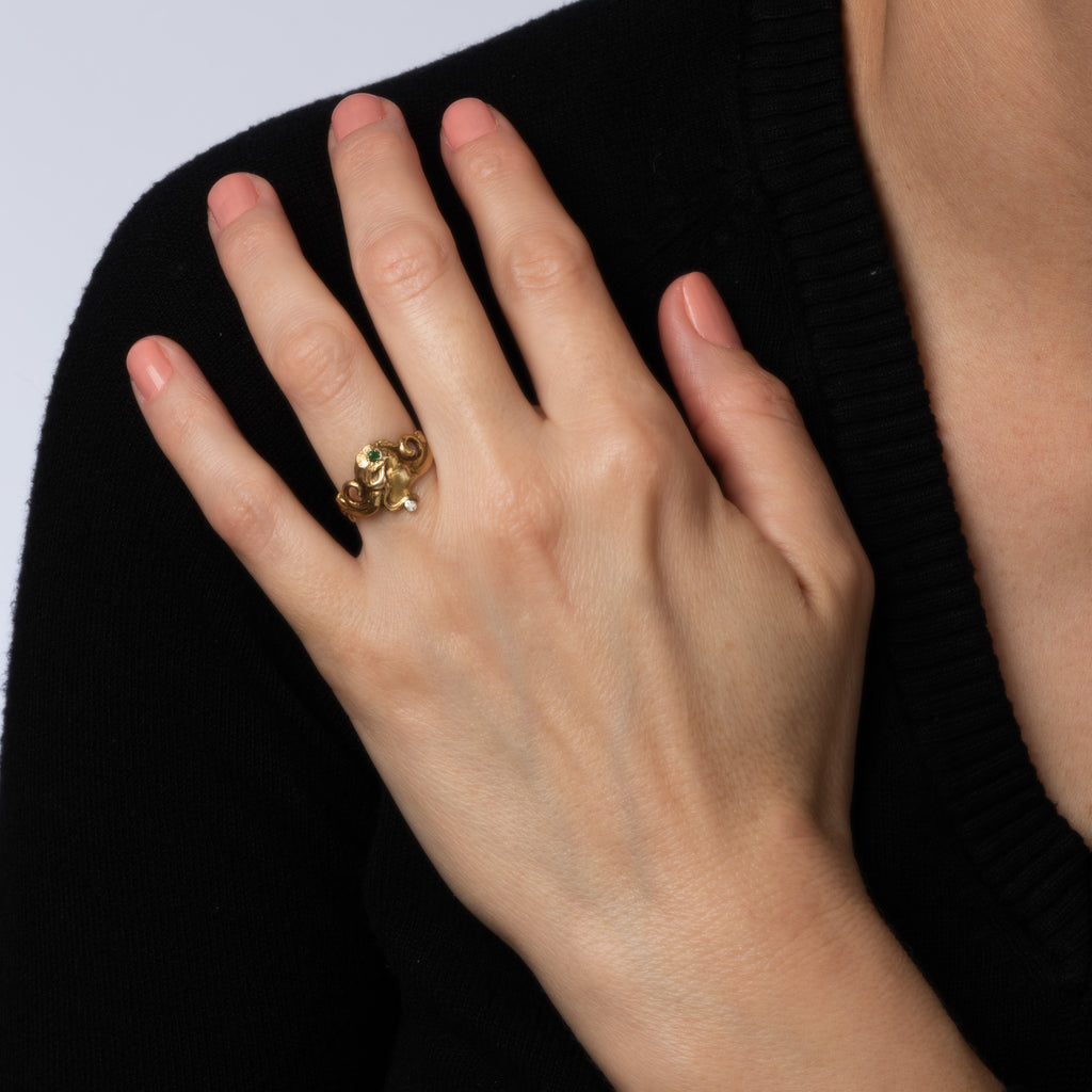 Metal & Hallmark: 14 karat yellow gold & 10k yellow gold. The ring is not hallmarked though it has tested positive for 14k gold (mount) and 10k gold (band).