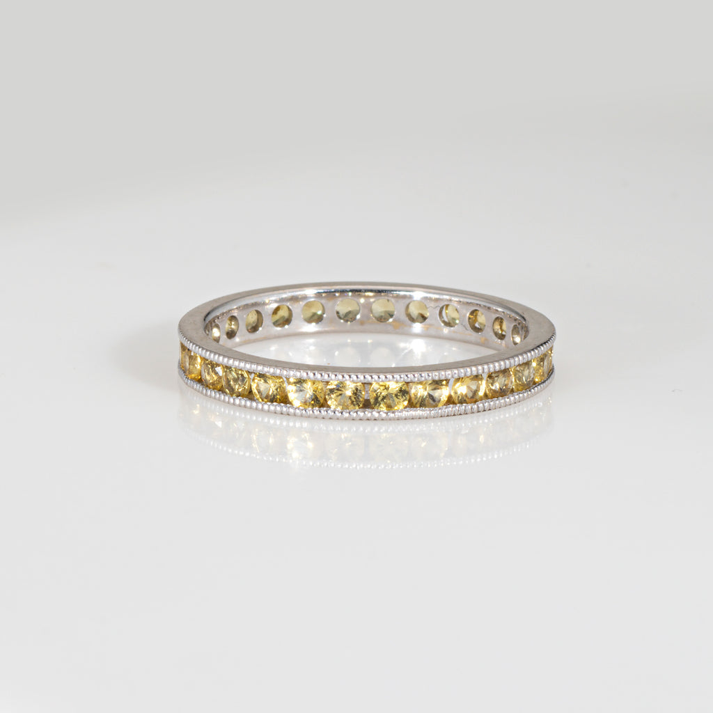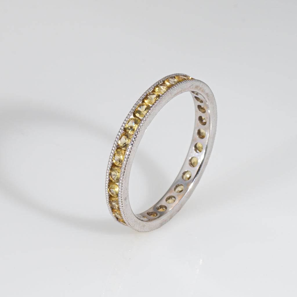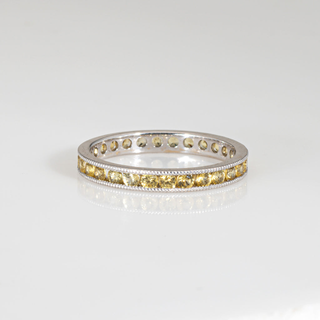 Yellow Sapphire Eternity Ring Sz 7.5 18k White Gold Stacking Band Fine Jewelry
