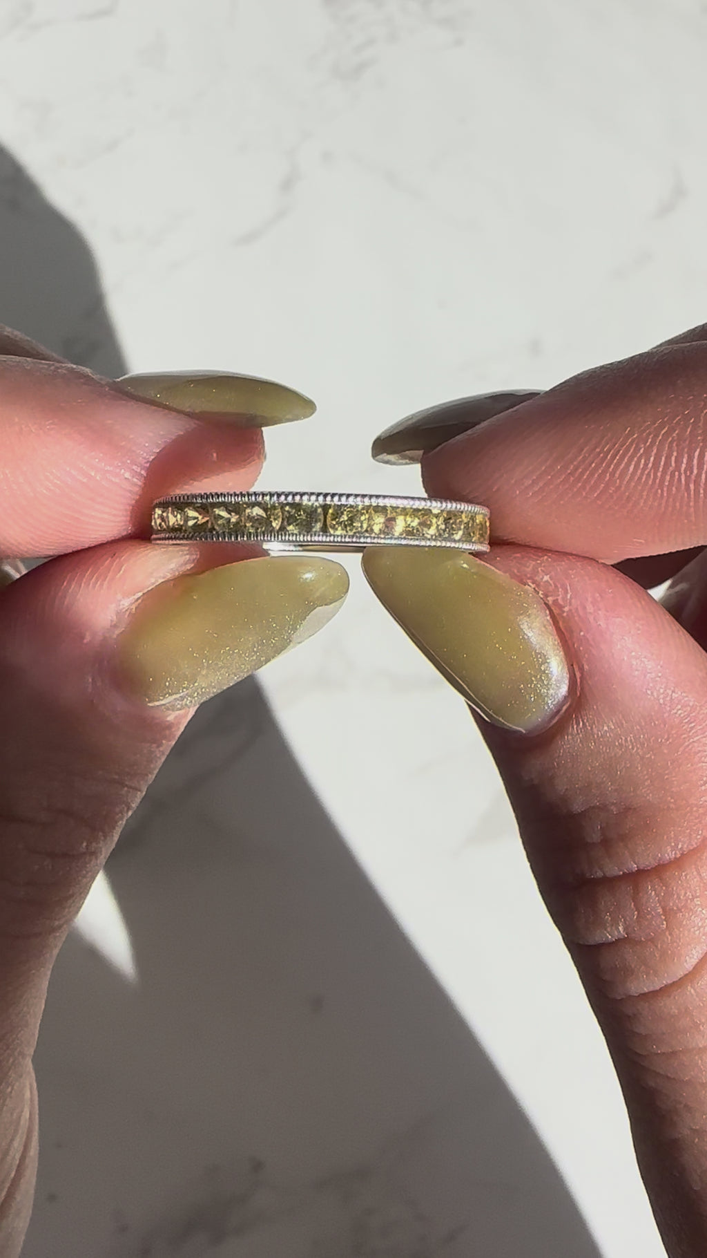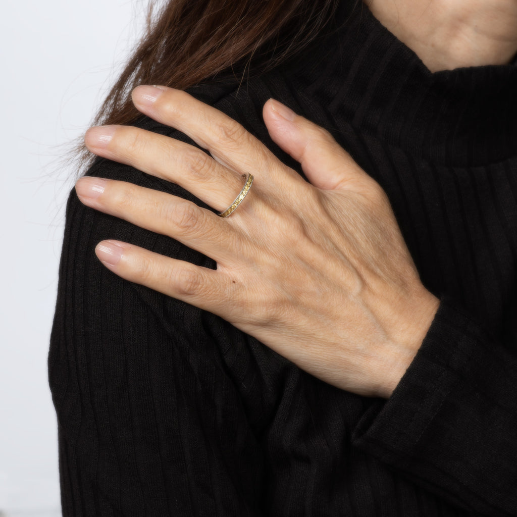 Set with bright and sunny yellow sapphires the ring is great worn alone or stacked. The low rise ring (1.5mm - 0.05 inches) sits comfortably on the finger.