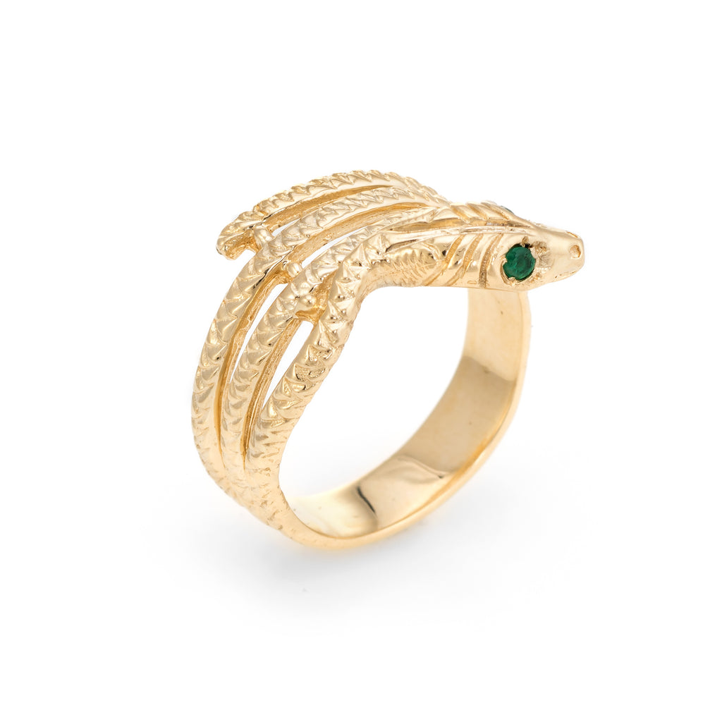 Finely detailed vintage snake ring, crafted in 18 karat yellow gold.