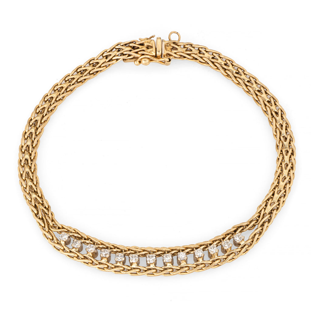 60s Diamond Mesh Bracelet Vintage 14k Yellow Gold 7" Estate Fine Jewelry