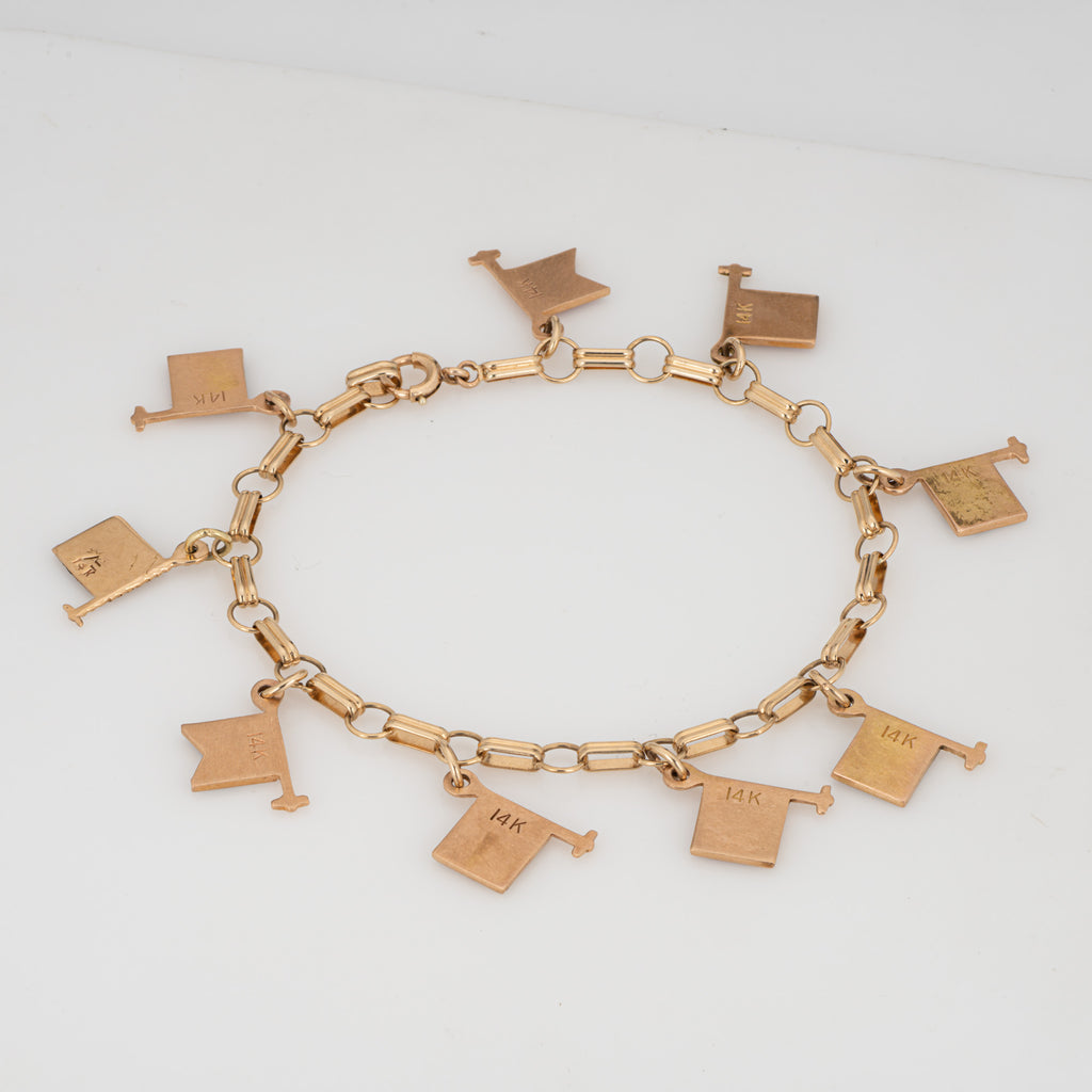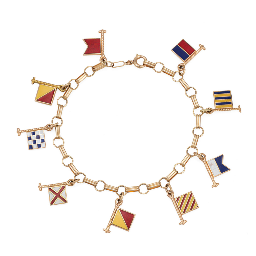 Vintage Nautical Flags Enamel Charm Bracelet 14k Yellow Gold Bon Voyage Jewelry