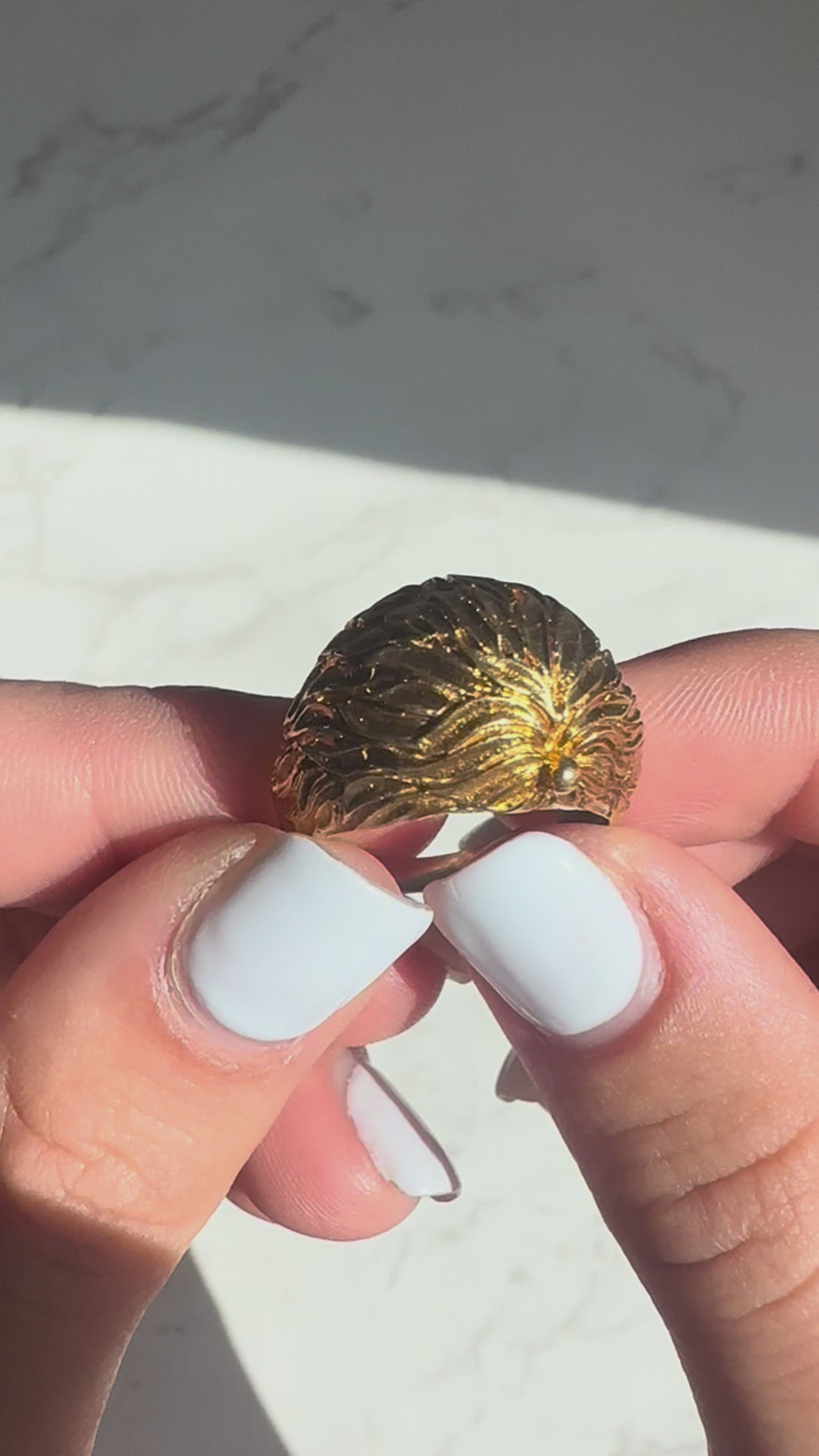 70s Vintage Dome Ring Sz 6.25 Cigar Band Textured Botanical 18k Yellow Gold