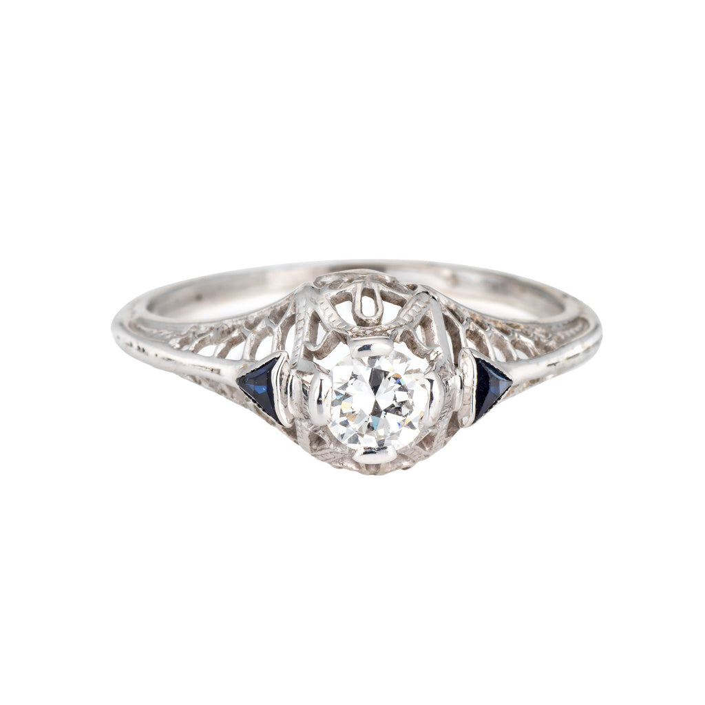 Vintage Art Deco Diamond Sapphire Ring 6.25 14k Gold Engagement Filigree Jewelry