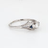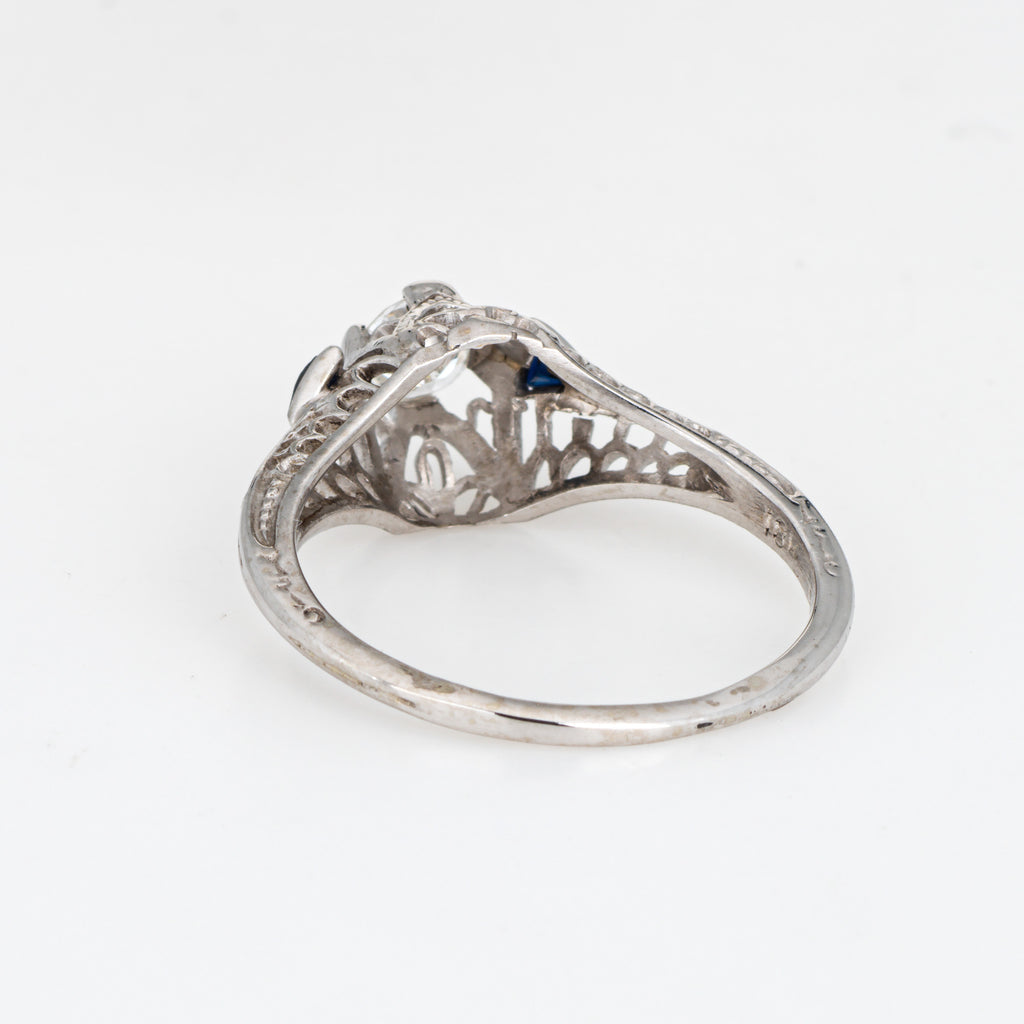 Finely detailed vintage Art Deco diamond & sapphire ring (circa 1920s to 1930s) crafted in 14k white gold.