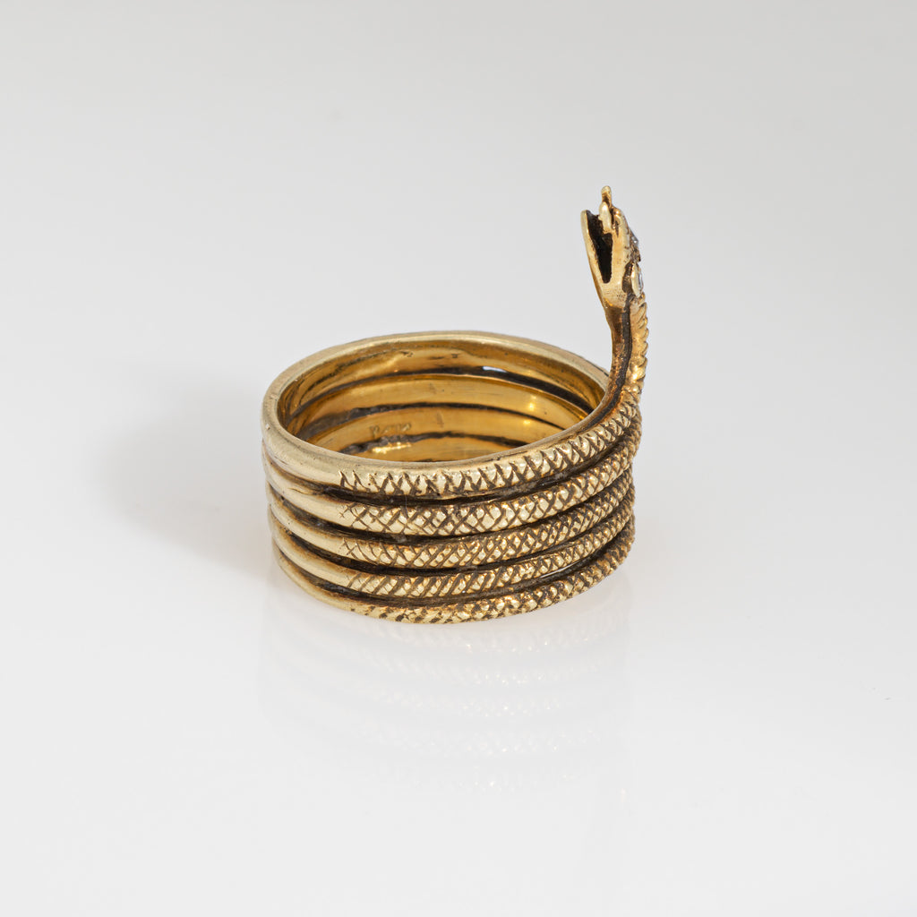 For centuries the snake has represented eternal love and faithfulness. The elaborate snake has a textured lifelike design and winds around the finger, making for a great statement on the hand. The ring rises 2mm from the finger (0.07 inches).