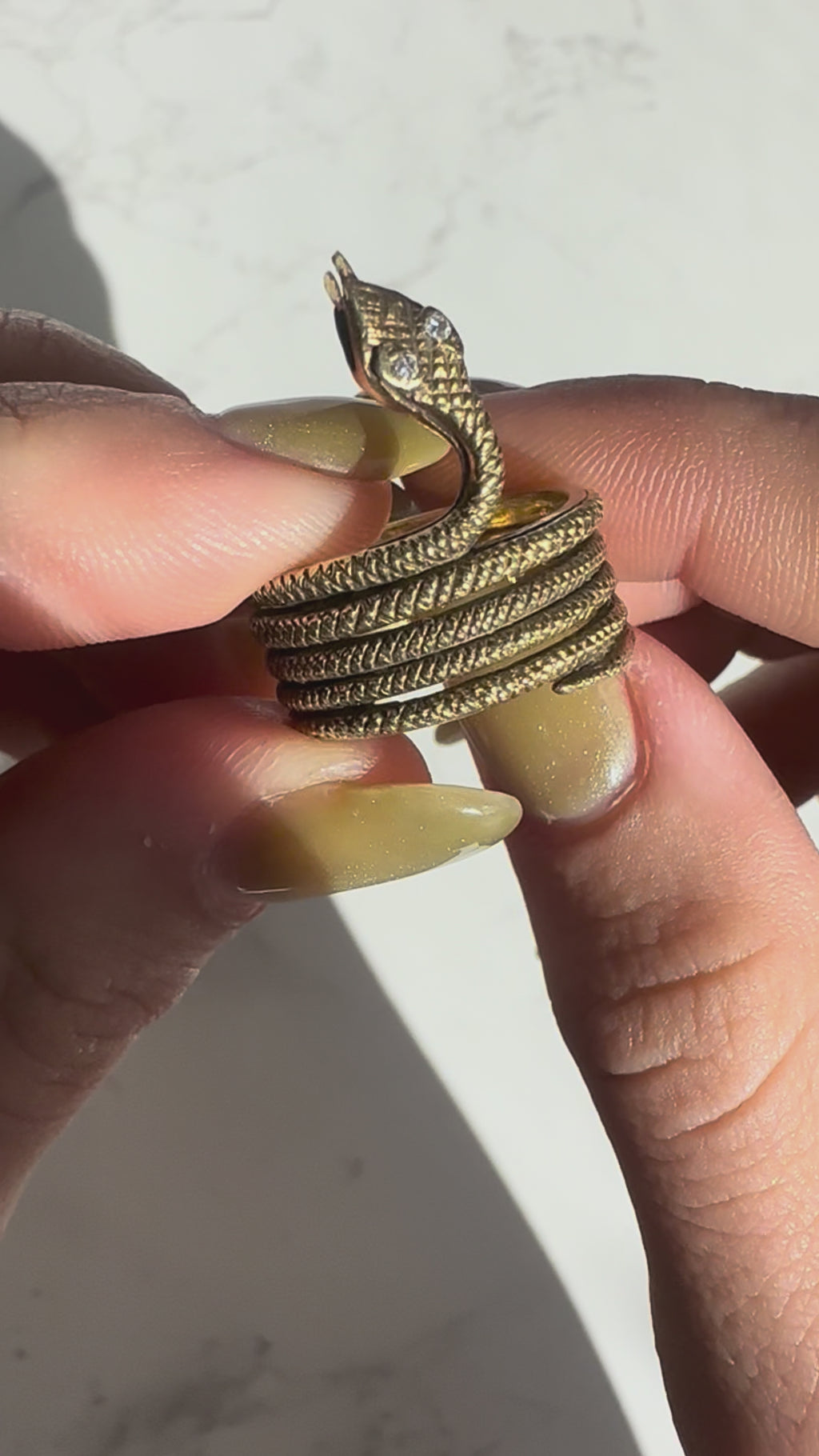 Size & Measurements: The ring is a size 6 (sizable). The snake measures 22mm (0.86 inches - end to end) and the band is 8.5mm wide (0.33 inches), rising 2mm from the finger.