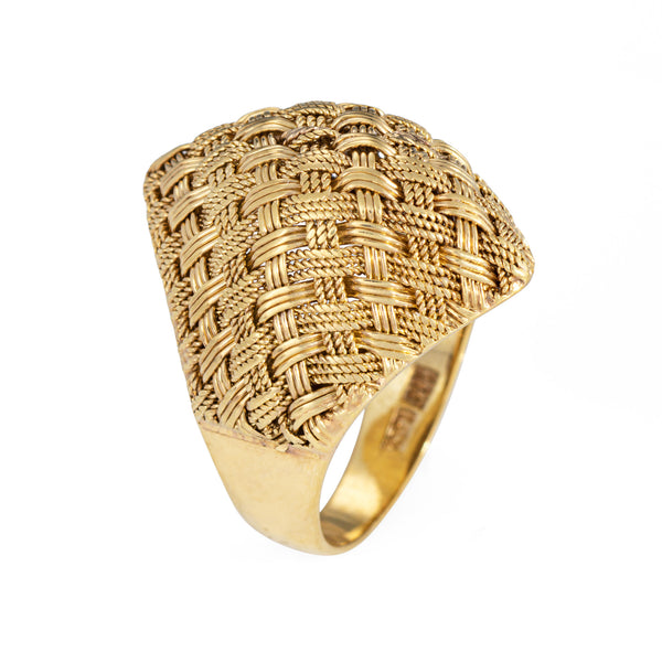 Cocktail rings are often defined as bold, eye-catching jewelry that was popularized in the early and mid part of the 20th century. They were often worn by guests at events to impress others and show their style. The designs can range from Art Deco patterns to more modern and avant-garde styles. They are a fun and creative way to express personality in fashion and are great collector's items.