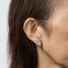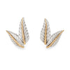 Crafted in a two leaf design the earrings highlight a vein of 18k yellow gold to the center with sterling silver leaves. Great worn during the day and can easily transition to a glam evening look. The earrings are fitted with hinged omega clip on backings for pierced or non-pierced ears.