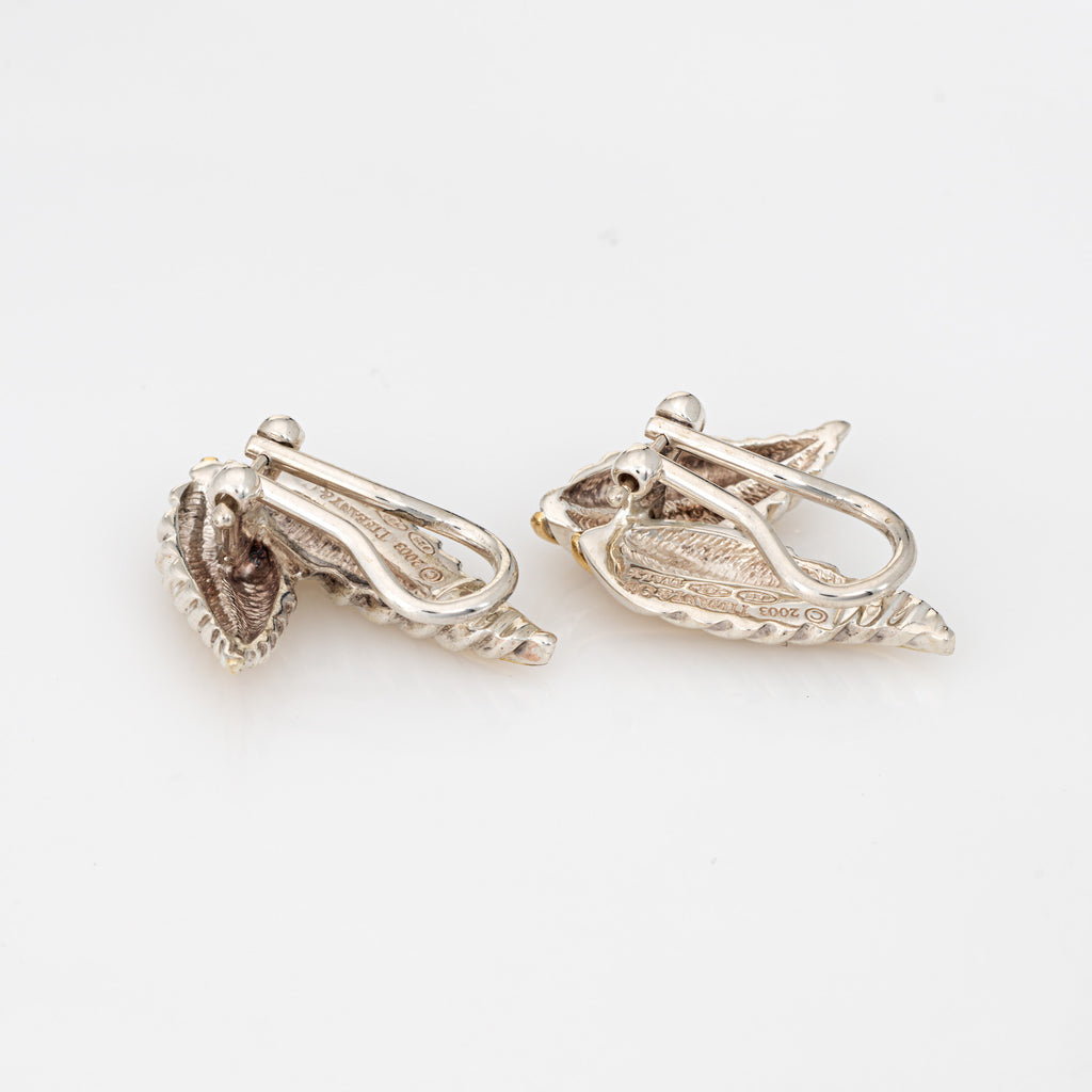c2003 Tiffany & Co Leaf Earrings Vintage Sterling Silver 18k Gold Clip On Signed