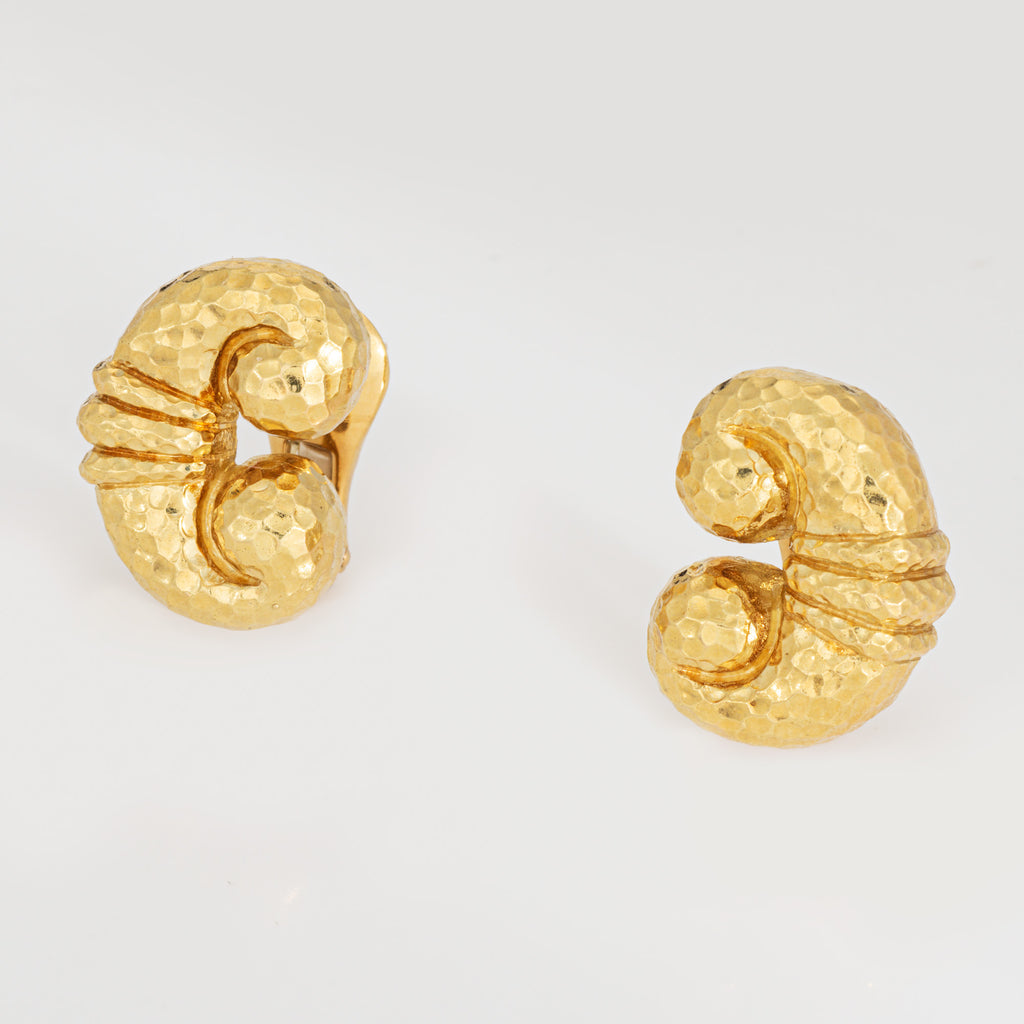 David Webb Earrings Vintage 18k Yellow Gold Scrolled Hammered Signed Jewelry