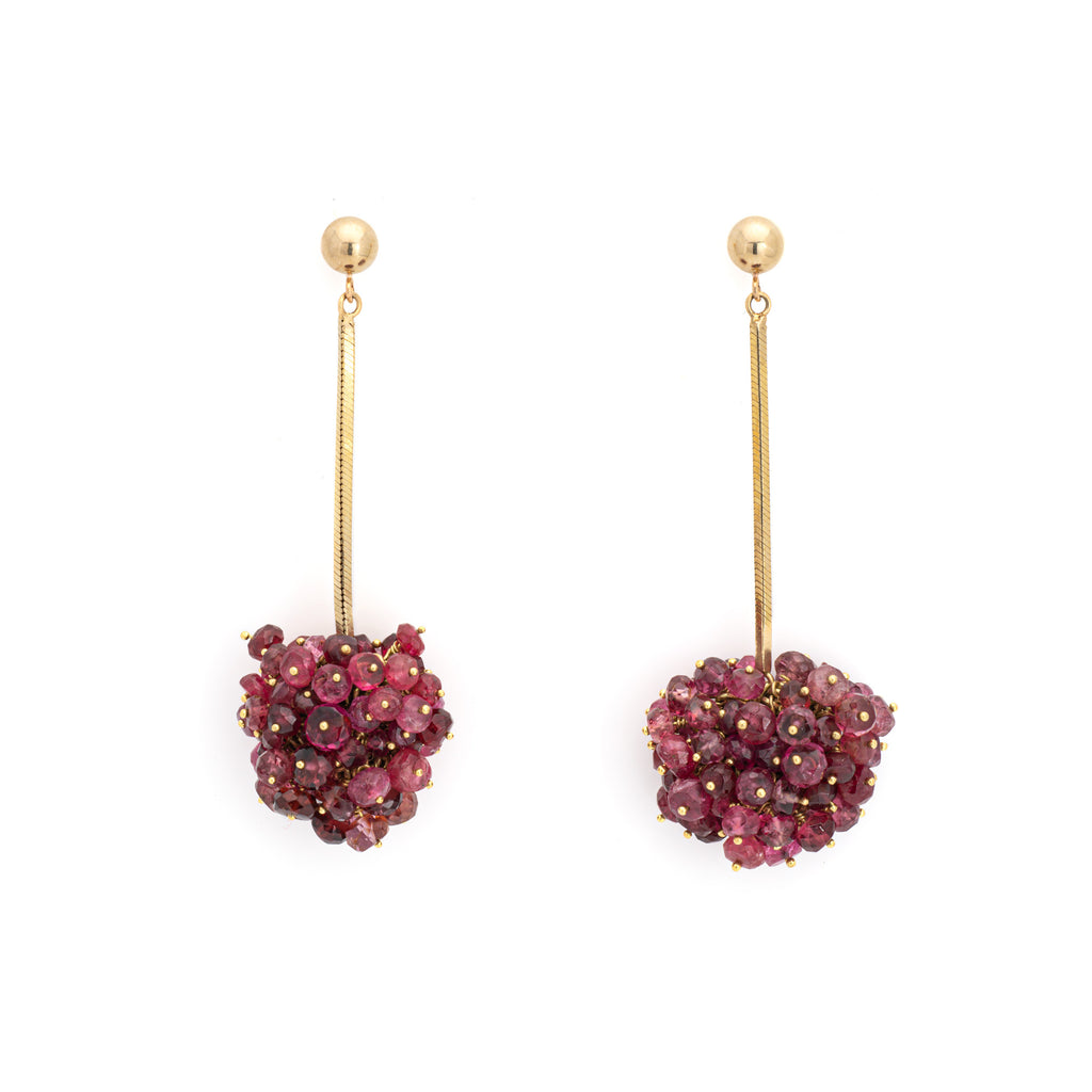 Set in cluster form, the 2 inch drop earrings were designed to resemble sweet raspberries. The pink tourmalines are faceted to allow for a subtle shimmer. A fun pair of earrings great for wear during the day or for a glam evening look. The earrings are fitted with posts and butterfly backings for pierced ears.