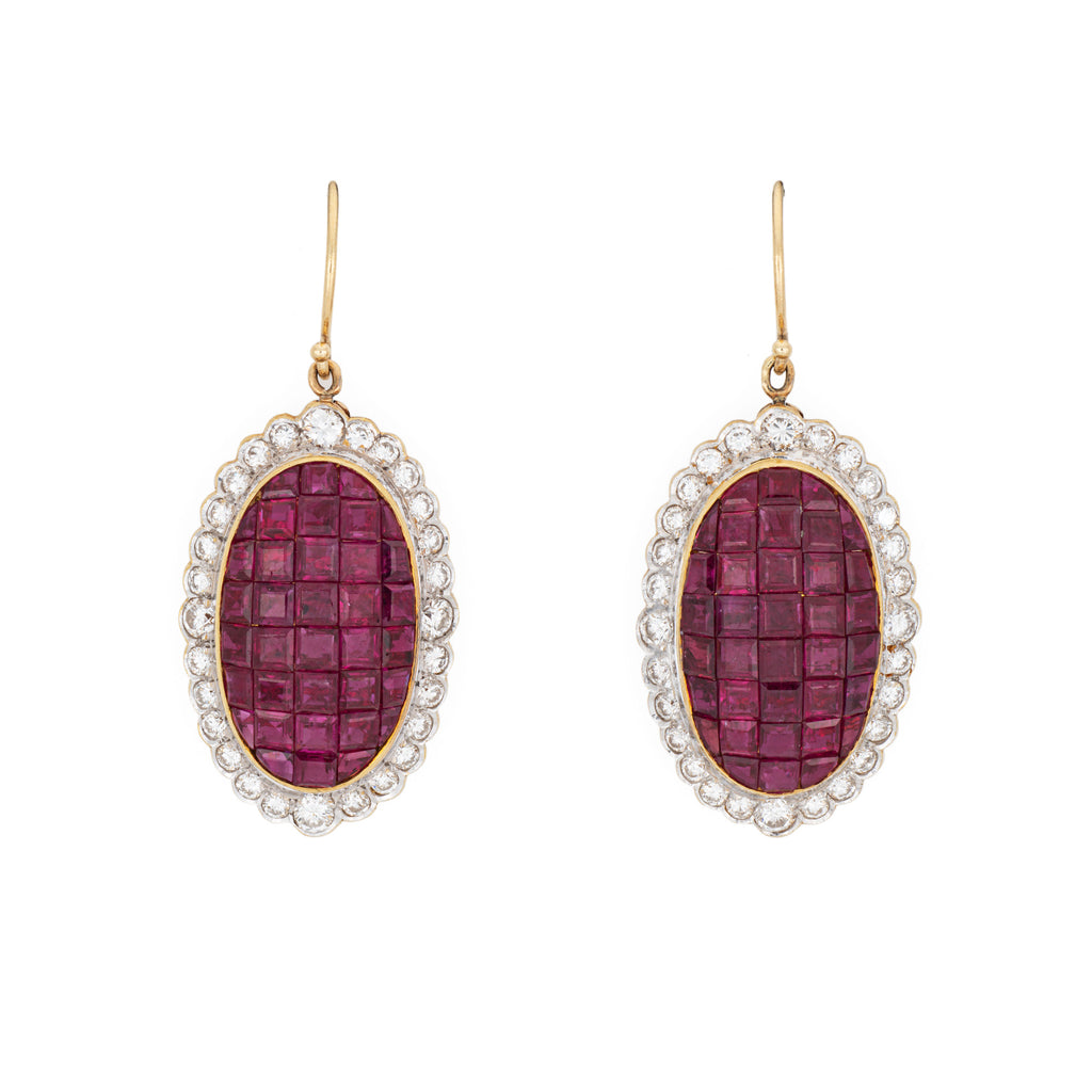 The invisible setting is a complex technique of cutting gemstones to fit very close together. This allows the gem setter to cover the surface of the mount with a floating gemstone mosaic look, resulting in a dramatic and unique piece of jewelry. Patented by Van Cleef & Arpels in 1933 and known as the 'Mystery Setting', the resulting jewels from the famed French jewelry house are some of the most memorable jewels ever created.