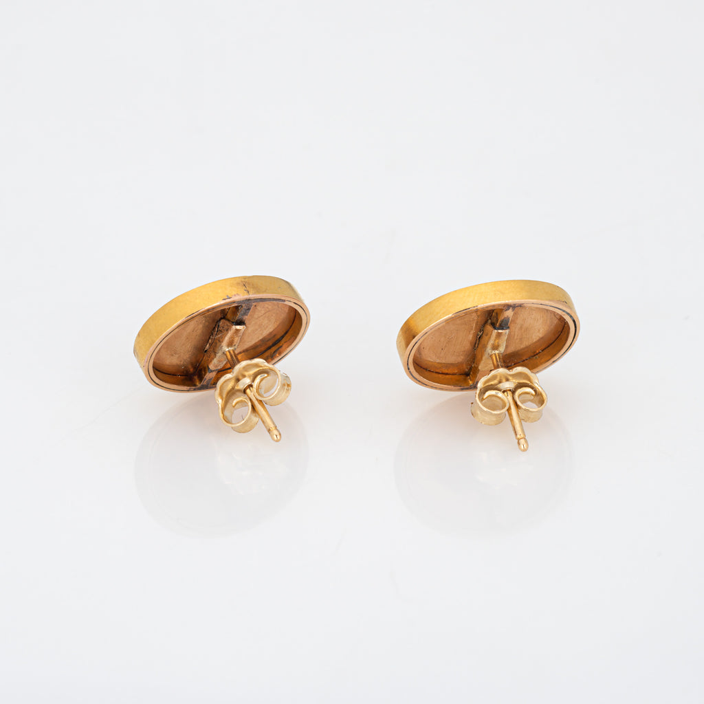 Metal & Hallmark: 18 karat yellow gold. The earrings are not hallmarked though they have tested positive for 18k gold. The posts and butterfly backings are 14k gold (tested) and a later addition to the earrings.