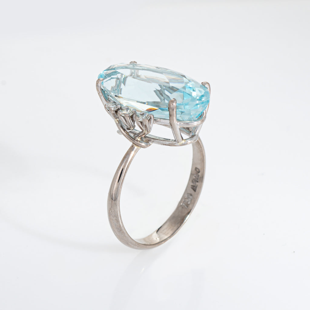 Stylish aquamarine & diamond cocktail ring crafted in 18k white gold.