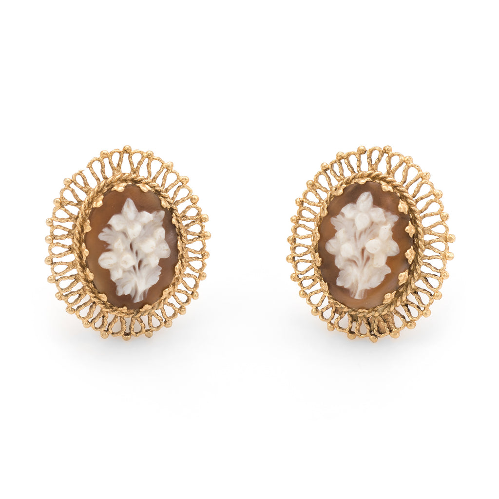 Stones: Shell cameos measure 15mm x 12mm, carved in the form of a bouquet of flowers. The cameos are in excellent condition and free of cracks or chips.