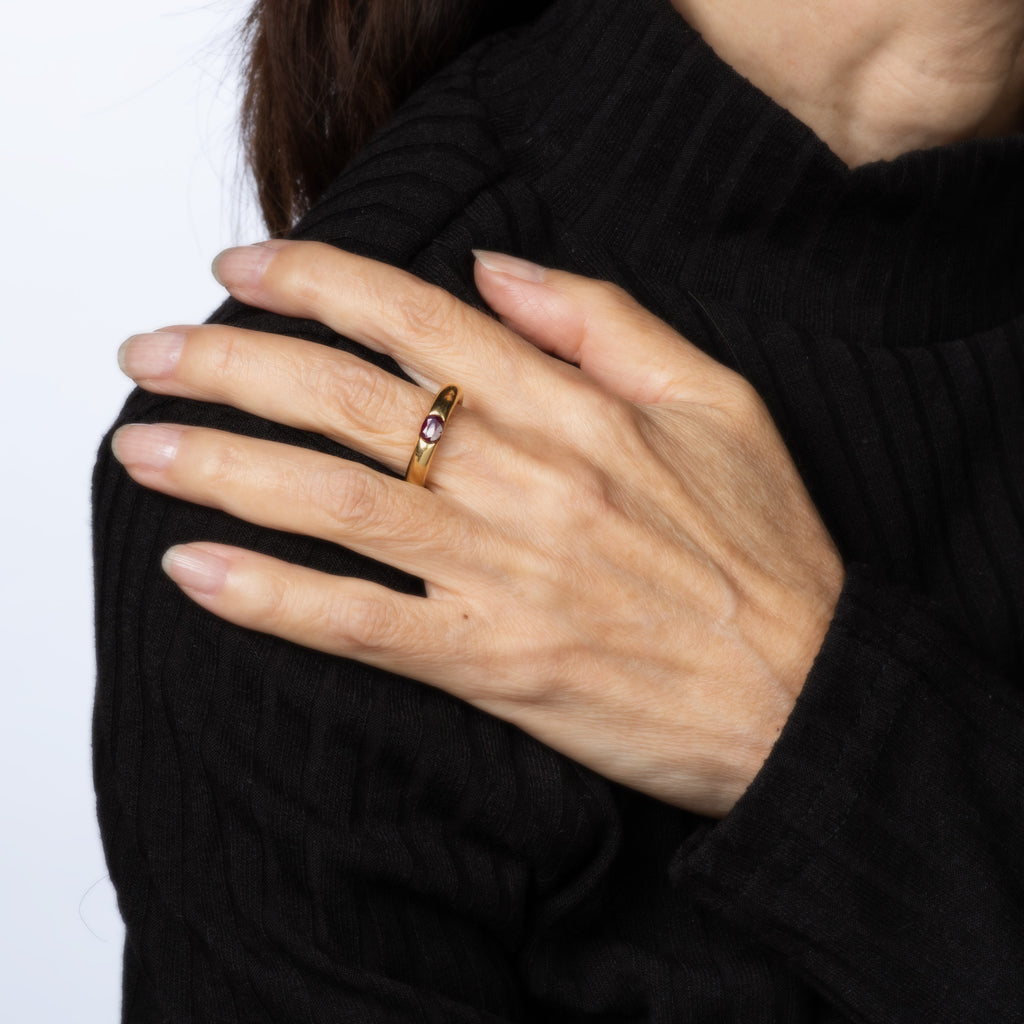 Stones: Oval faceted ruby measures 5mm x 4mm (note: small chip to the edge of the ruby - visible under a 10x loupe).