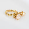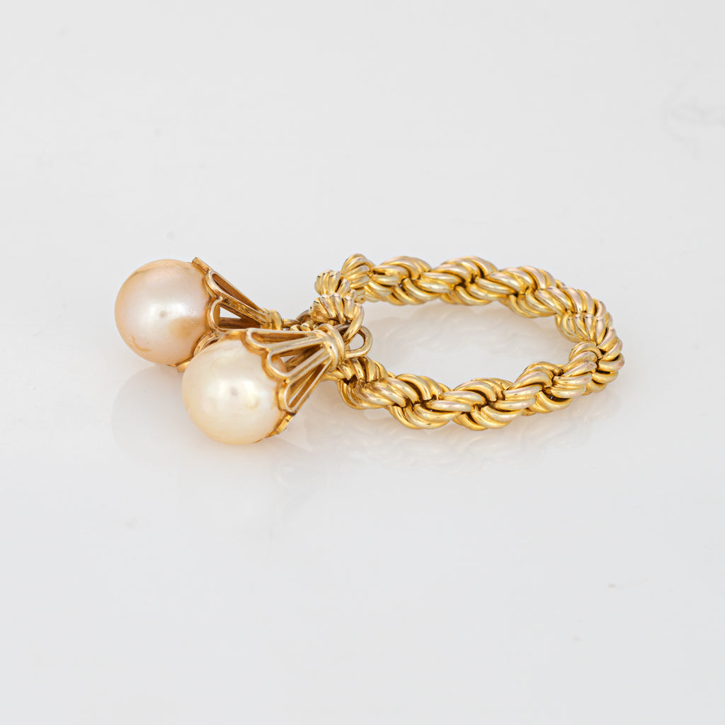 Cultured Pearl Charm Ring 70s Vintage 14k Yellow Gold Rope Flex Band Sz 6