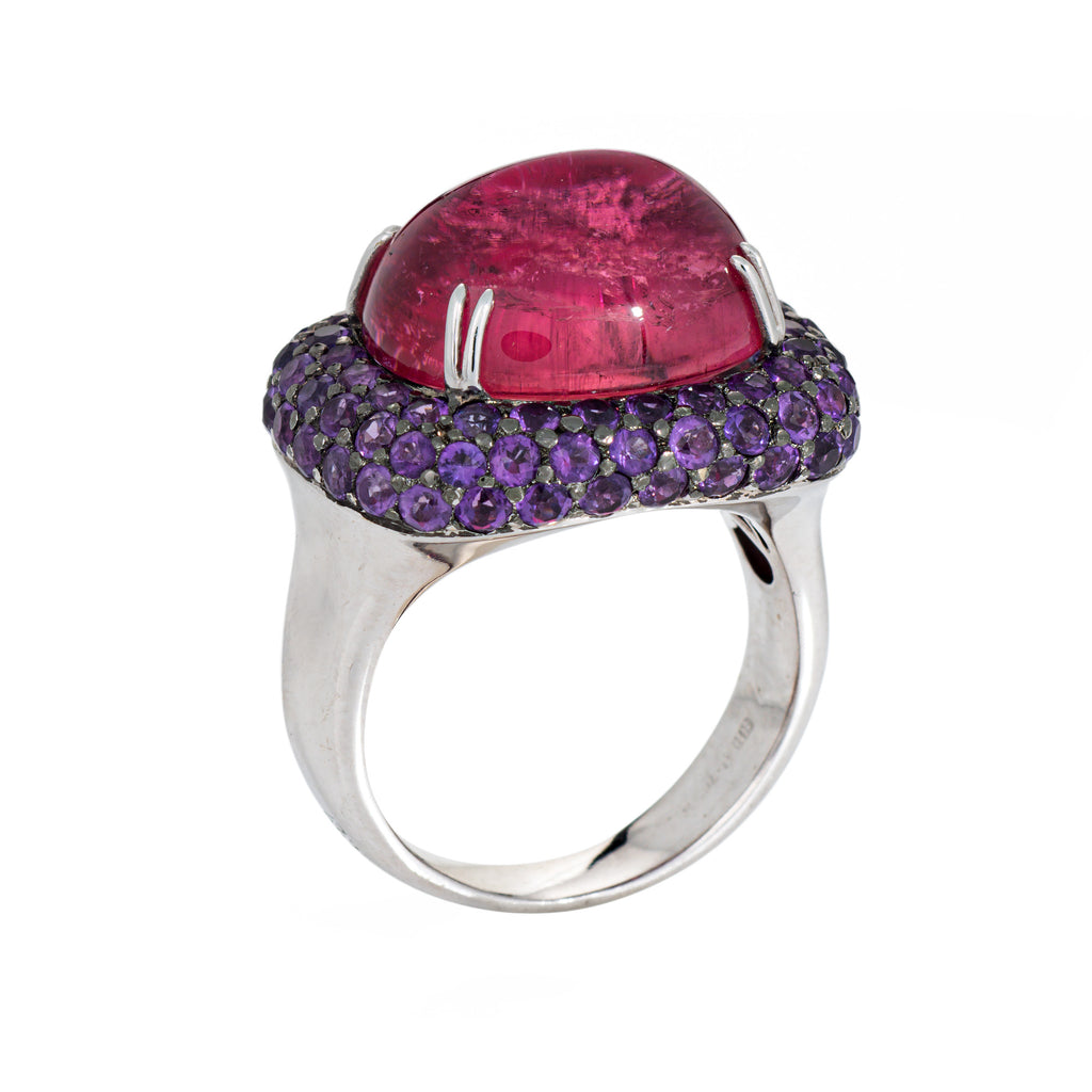Stylish contemporary rubellite and purple sapphire ring crafted in 18 karat white gold (circa 2000s).