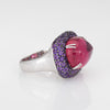 Rubellite cabochon measures 15mm x 12.5mm. Purple sapphires measure approx. 1.5mm each.