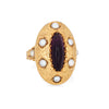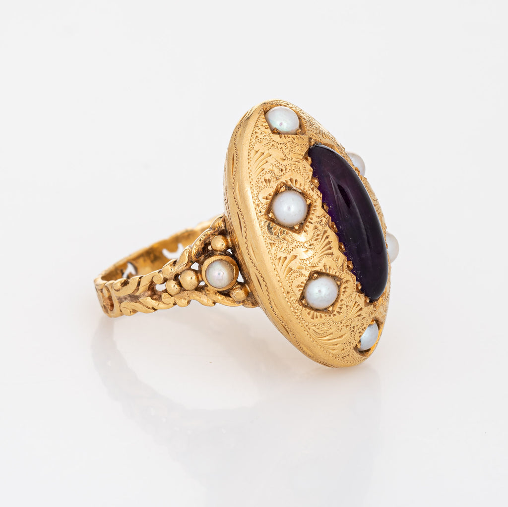 Stylish vintage amethyst & pearl cocktail ring crafted in 14 karat yellow gold.