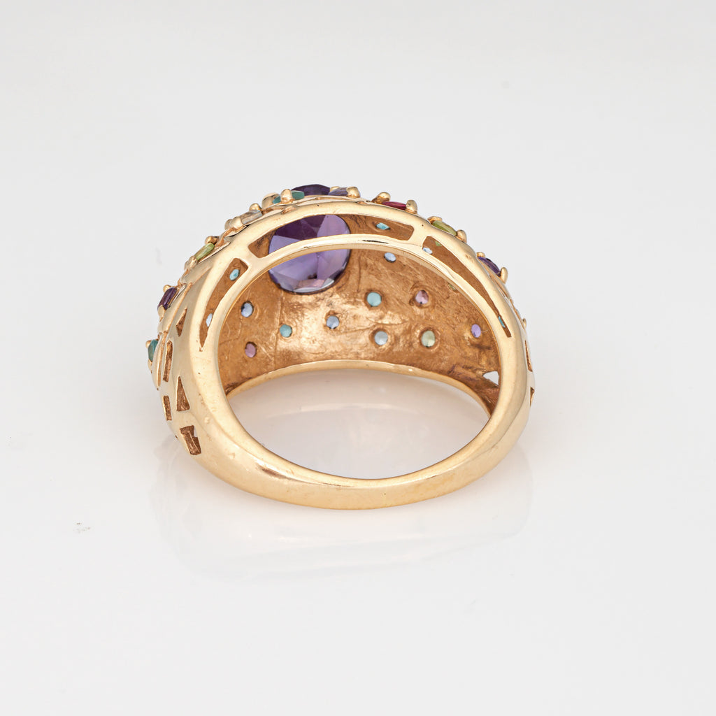 Stylish vintage rainbow gemstone "Peacock" ring crafted in 14 karat yellow gold.
