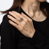 The colorful ring highlights a royal purple amethyst to the center, with a rainbow of smaller semi-precious gemstones to the side shoulders. The band is great worn alone or stacked. The medium-rise ring (8.5mm - 0.33 inches) sits comfortably on the finger.