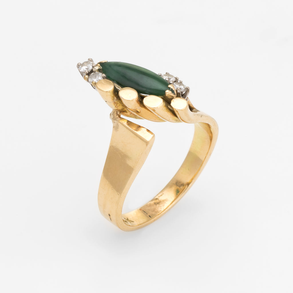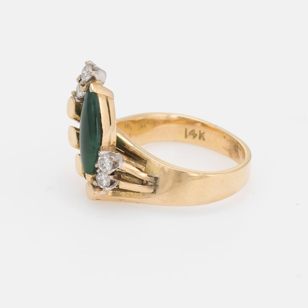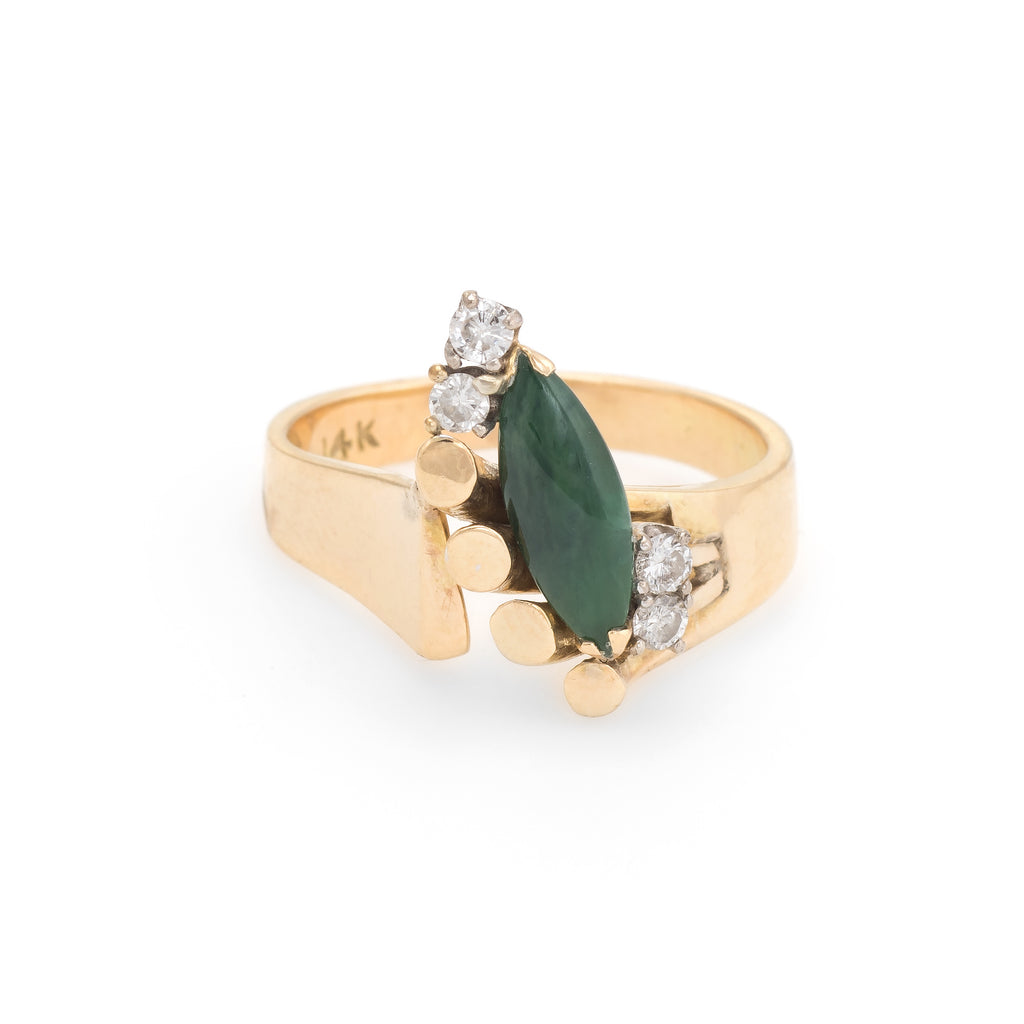 Finely detailed vintage jade & diamond cocktail ring (circa 1970s), crafted in 14 karat yellow gold.