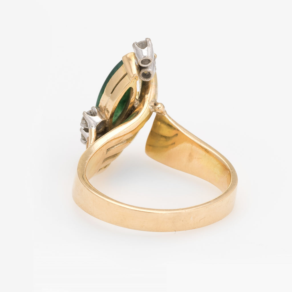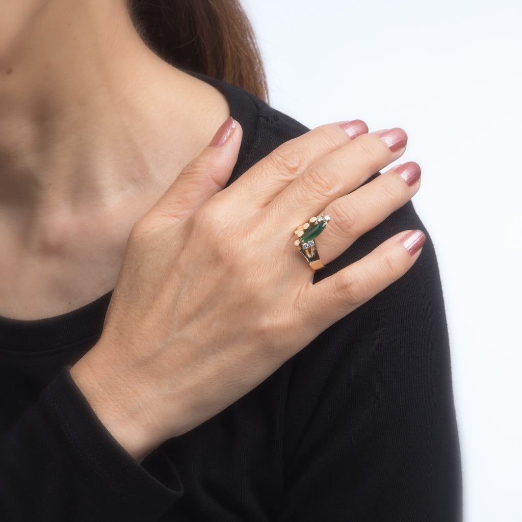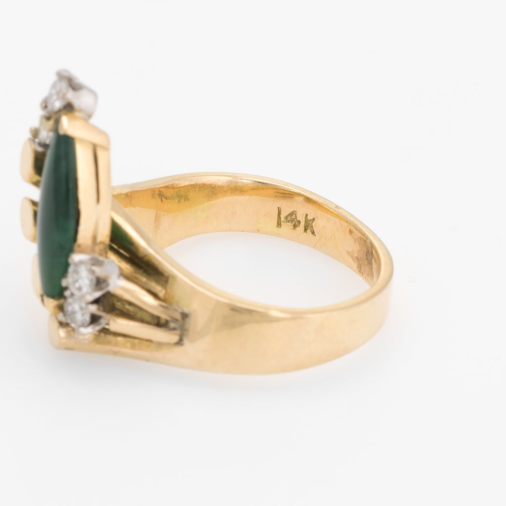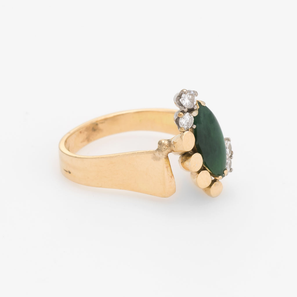 Finely detailed vintage jade & diamond cocktail ring (circa 1970s), crafted in 14 karat yellow gold.