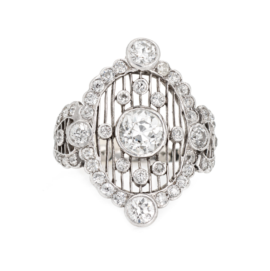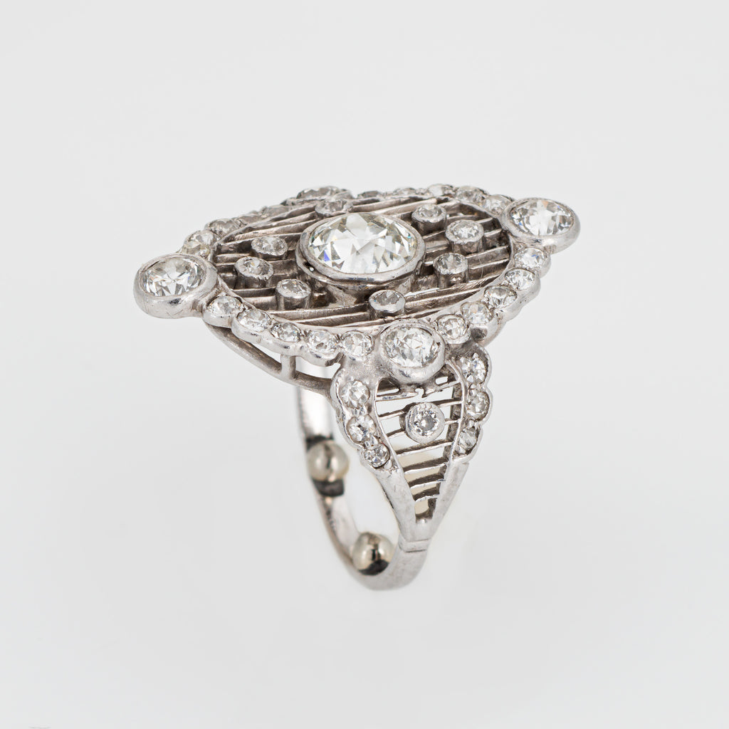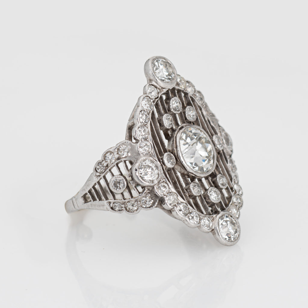 Antique Edwardian Diamond Ring Platinum Sz 6 Oval Cocktail Fine Jewelry
