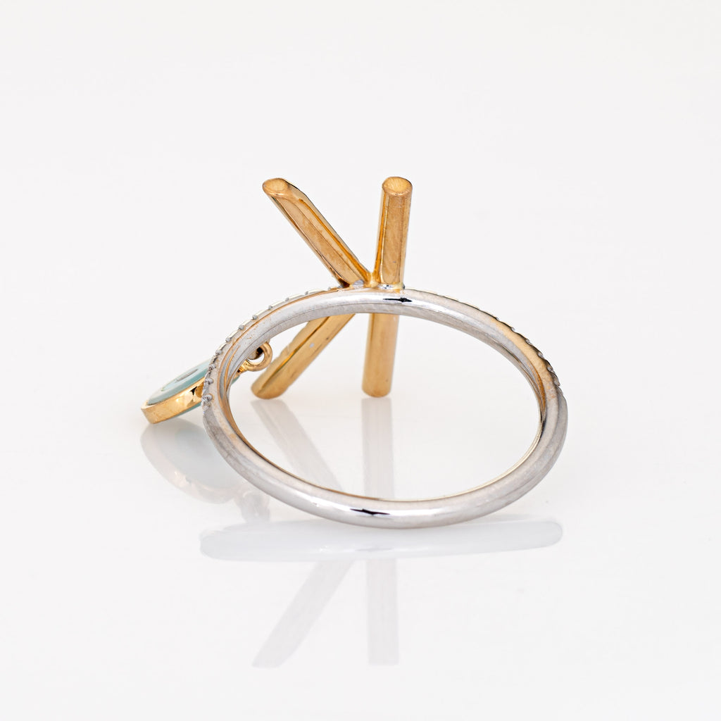 Metal & Hallmark: 14 karat white & yellow gold. The ring is not hallmarked though it has tested positive for 14k gold.