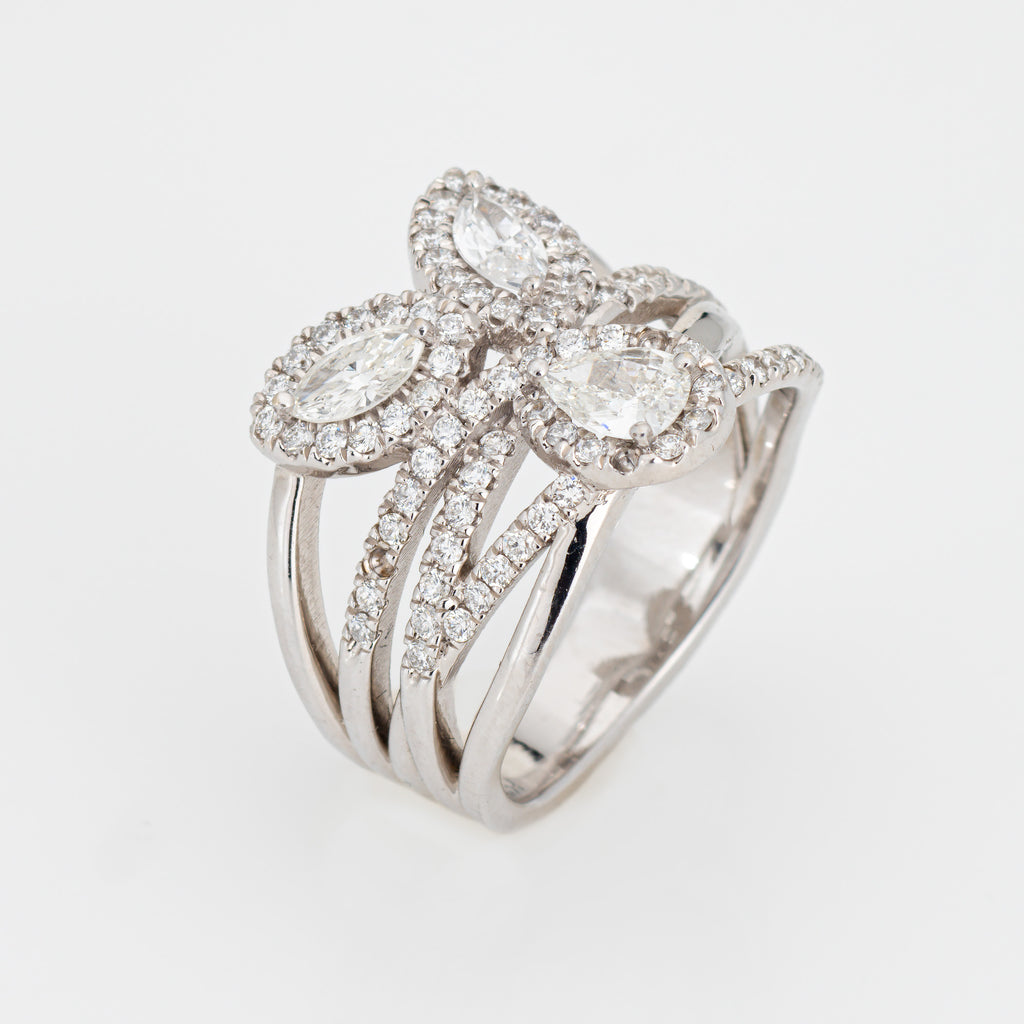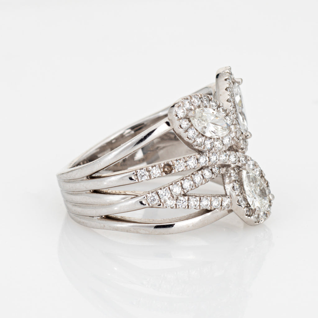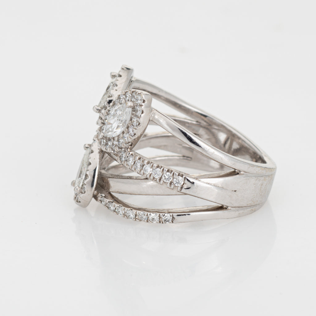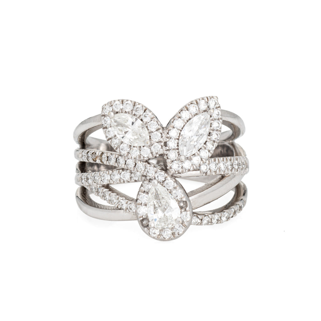 Stones: Pear, marquise & round brilliant cut diamonds total an estimated 1.10 carats (estimated at H-I color and VS2-SI2 clarity).