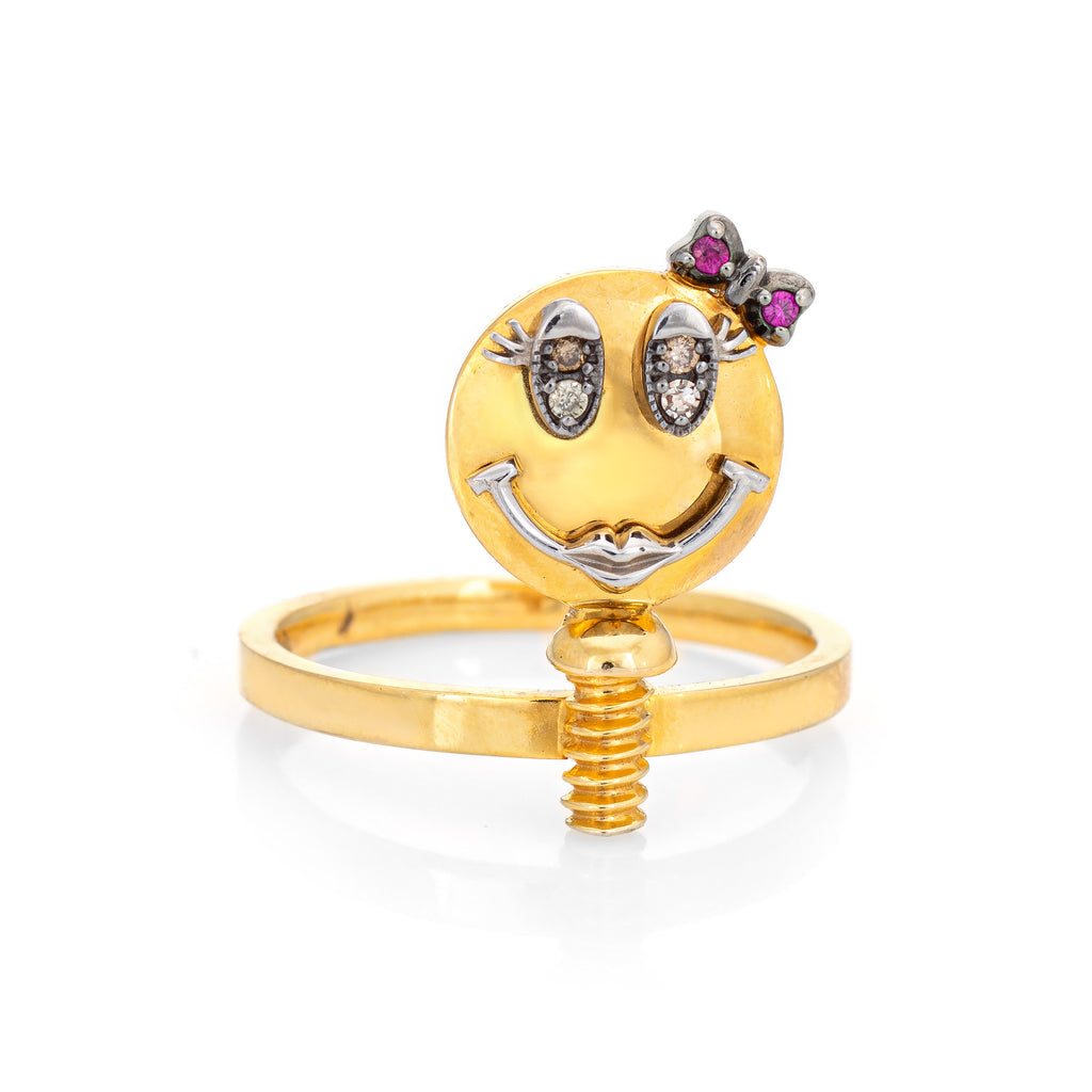 Stylish Sally Sohn happy face ring crafted in 18 karat yellow gold.
